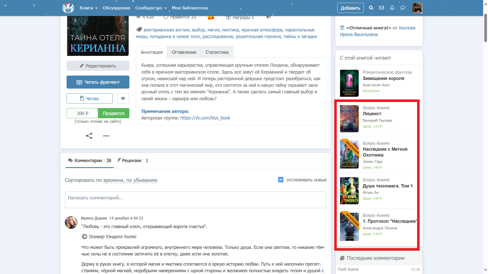 А ещё меня очень интересует, почему с моей книгой читают одну боярку. Всё время удивляюсь, как захожу на страницу книги. Примечательно, что покупают её исключительно женщины. Видимо, те, которые читают боярку.