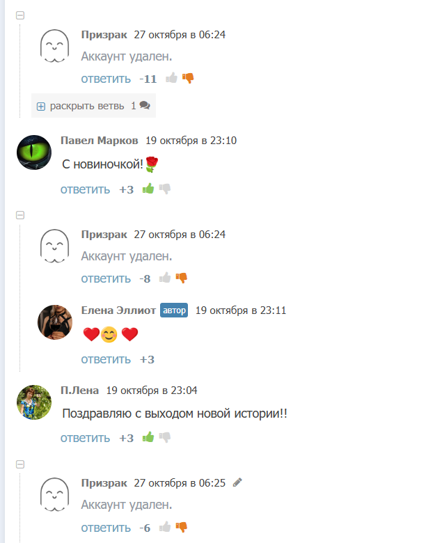 Стоит отметить и одного хейтера, который своими комментариями создал нужный антураж моей книги. Она ведь про призраков, и в комментах призраки - всё как надо!