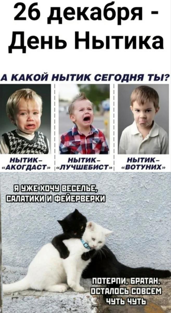 Автор: Милый дикобразНе будем ждать субботу! Да и смысл ждать последнюю субботу уходящего года? Всех с прошедшим Днём нытика!