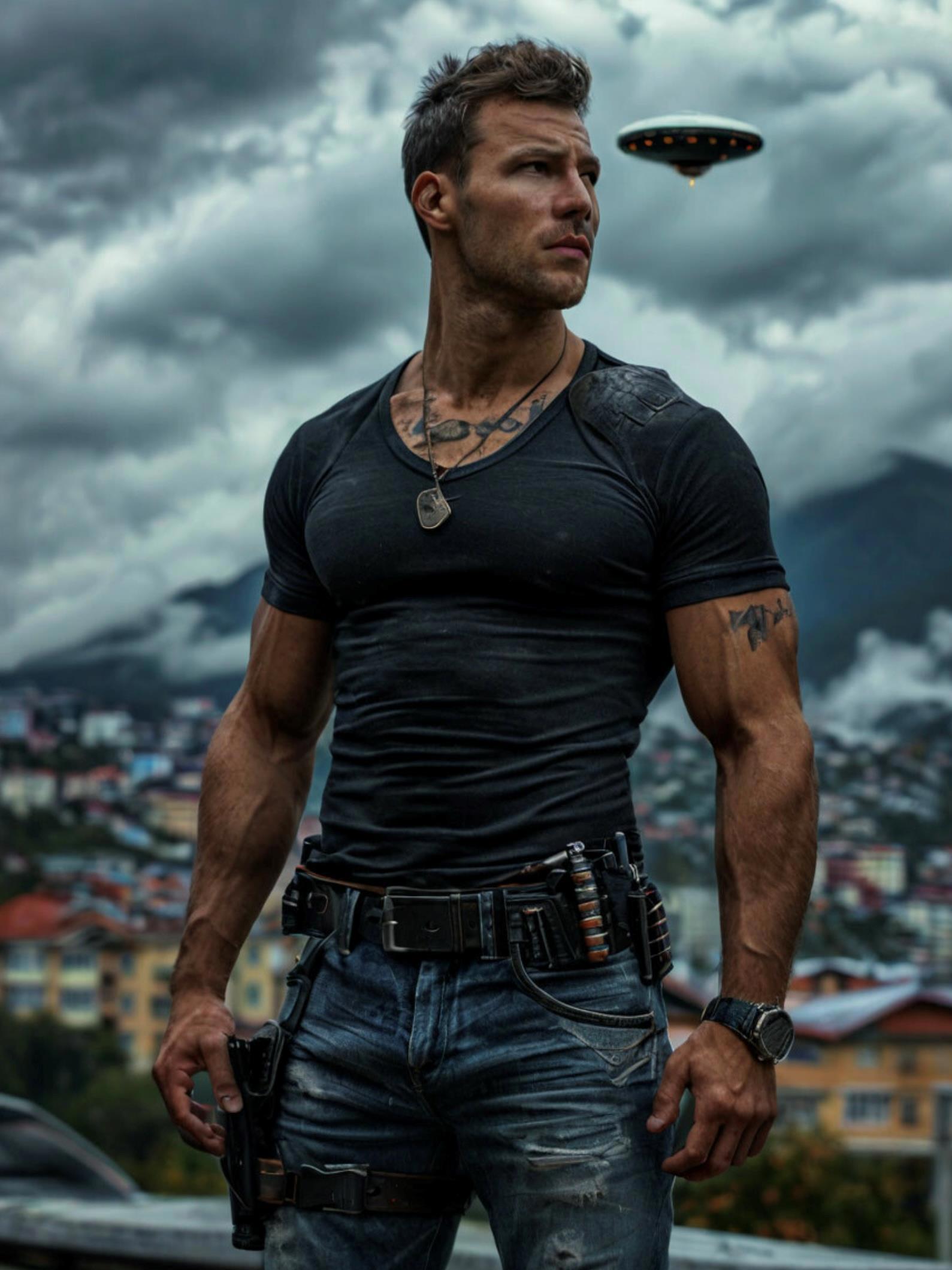 Ну, вот он, на фоне Сочи, население которого старательно уничтожается генетическим оружием. Кое-как заставил нейронку изобразить требующееся, знакомьтесь.