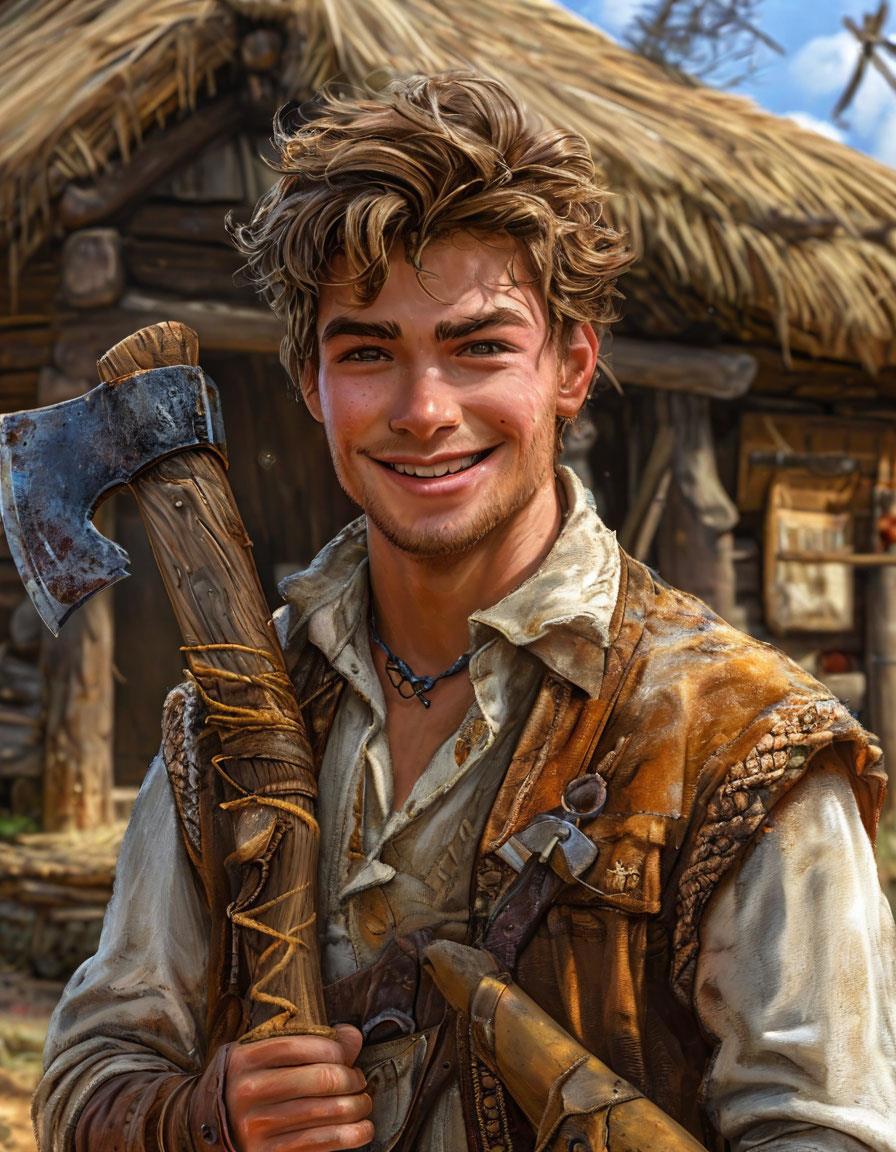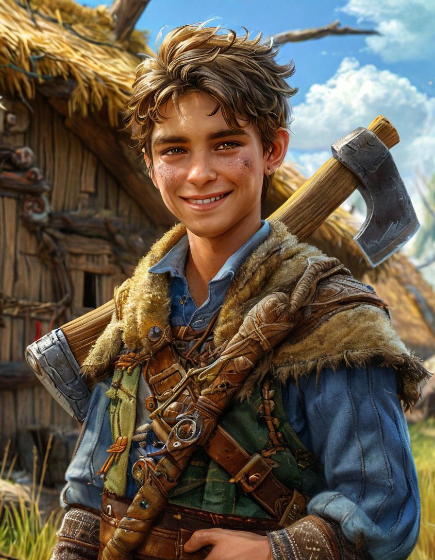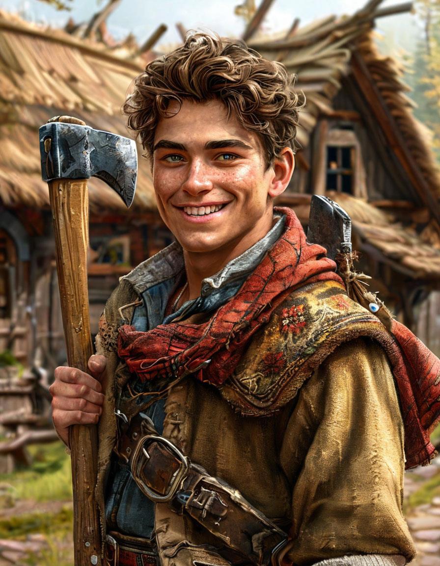 Я так и не смог добиться от Шедеврума портрета подростка (почему-то он на это слово ругался, а на парнишку нет) с лопатой. Вспомнил слова уважаемого Грильяжа о топоре. Полночи потратил -- удобоваримого результата не получил. А сейчас за десять минут накидал аж 4 штуки. И у меня возникла проблема выбора. Поможете?