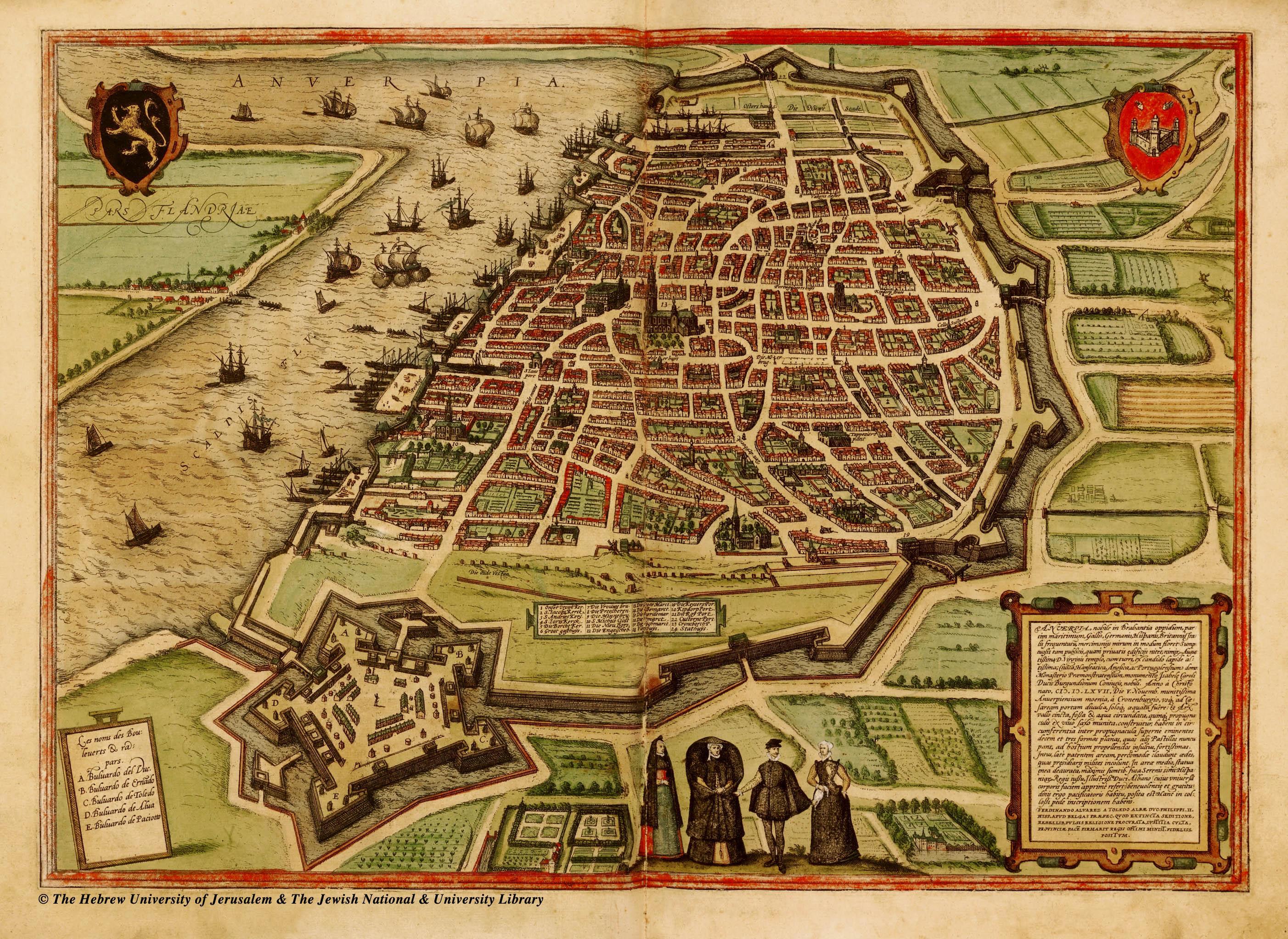 Естественно, это карта того самого XVI века, издание Плантена, который нередко упоминается в романах "Короли без короны" и "Меч и право короля". А разу уж я вспомнила Плантена, то вот и город, где он жил — Антверпен.