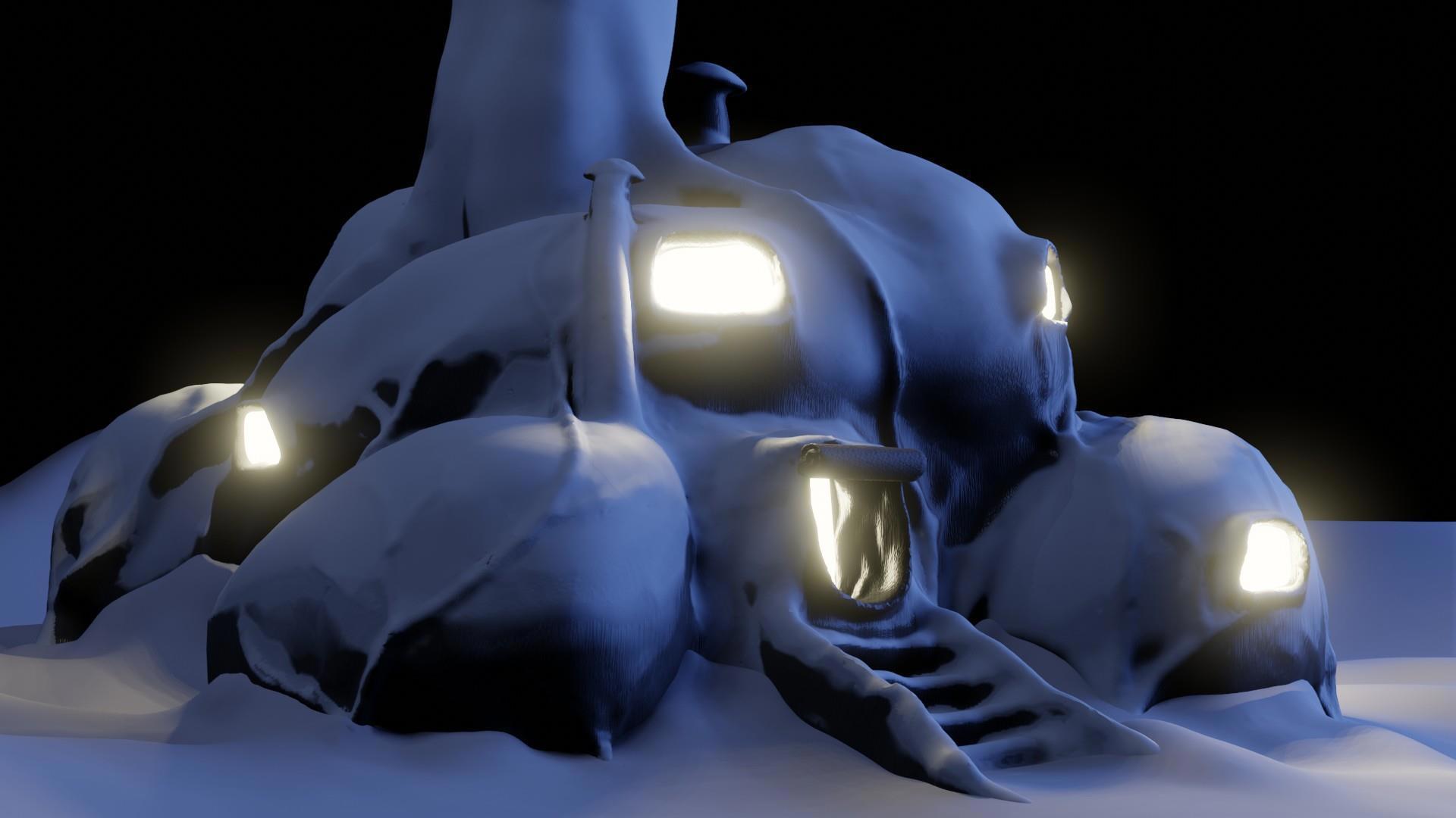 Это одна из первых моих попыток что-то сделать в блендере - листья я тогда не знал как сделать, нод в блендере не было вовсе, потому было решено сбацать зиму, как не требующую особых декораций.