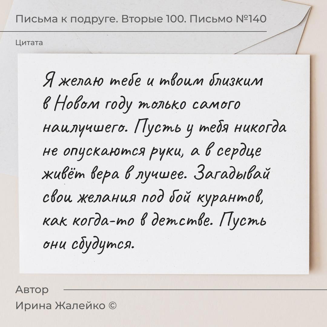 Автор: Ирина ЖалейкоДо Нового года осталось совсем немного...) У каждого из нас уходящий 2024 год оставит разные чувства. Но в будущее нужно смотреть с надеждой и оптимизмом. Я украсила ёлку, подготовила подарки своим родным и близким и написала Новогоднее письмо из серии "Письма к подруге" №140