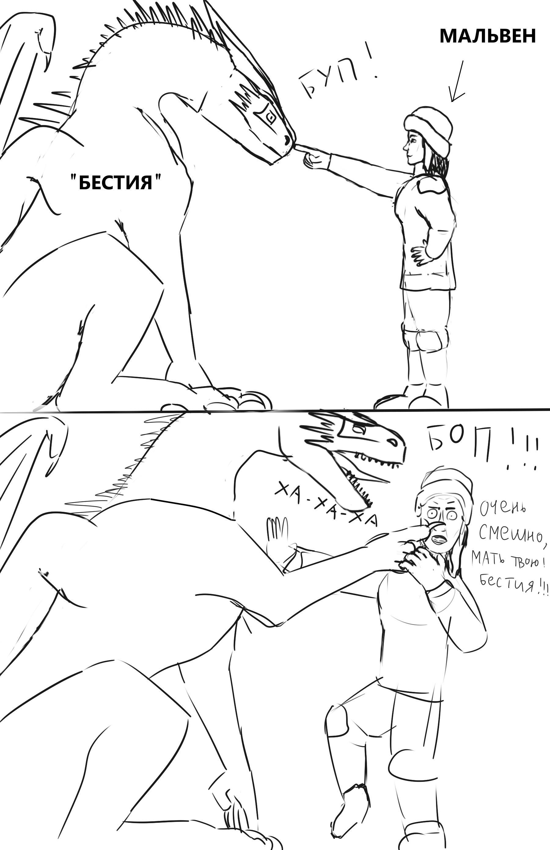 И еще. Касательно продолжения: сделал тут набросок забавный, чтоб представить нового перса, который появится в первых главах книги. История в целом мрачная с упором на драматизм, и подобных индивидов там однозначно не хватает ("он-она" появится не просто, чтоб разбавить горе-атмосферу, тут всё по делу, хыхы). Крылатые знакомые называют сего персонажа "Бестия":