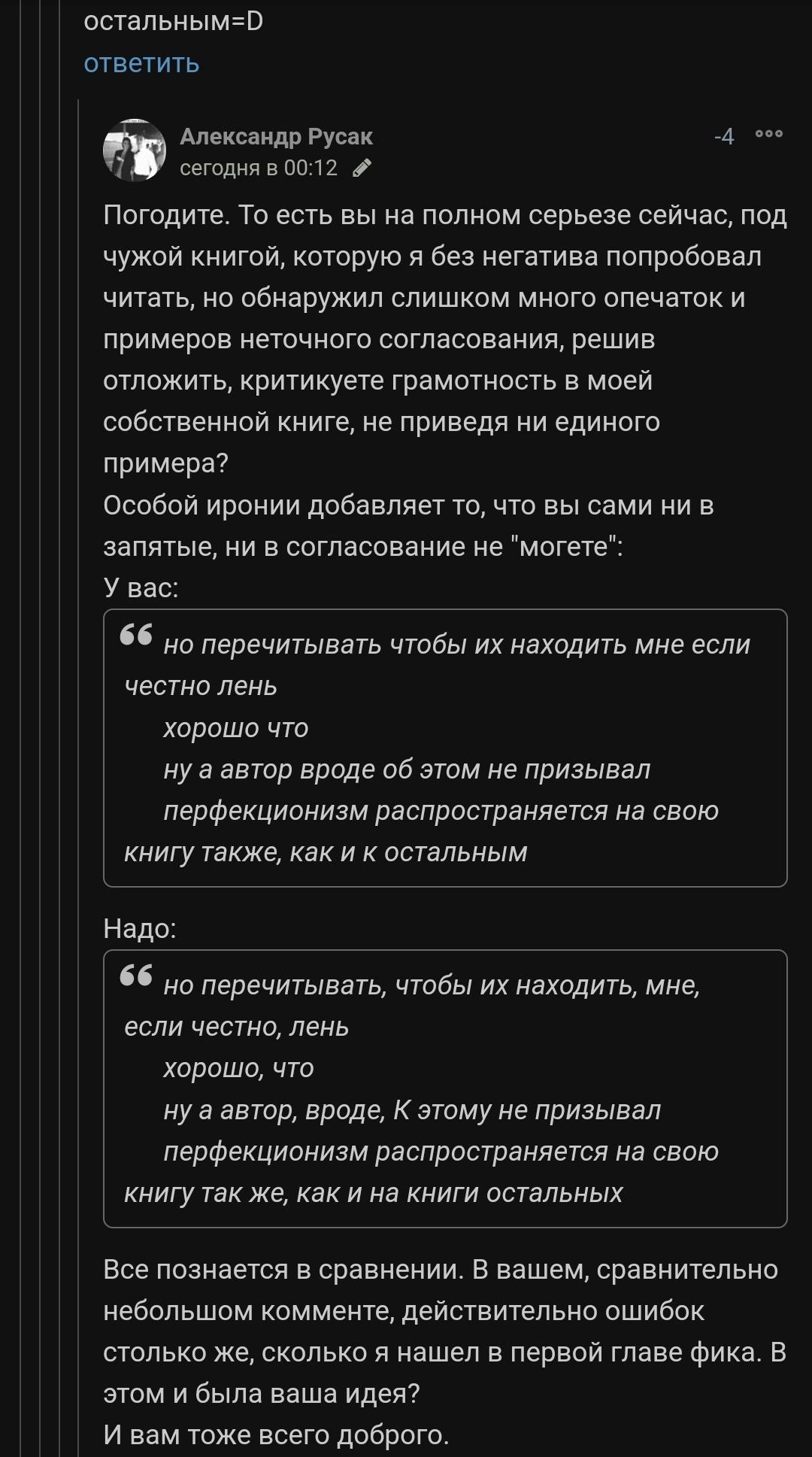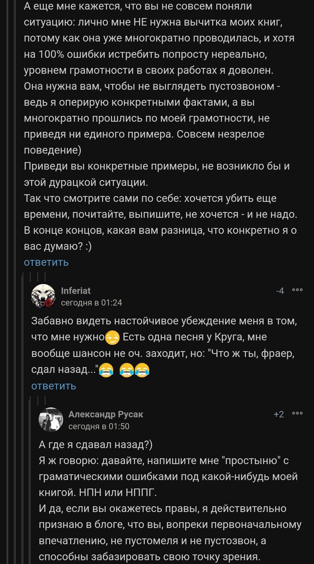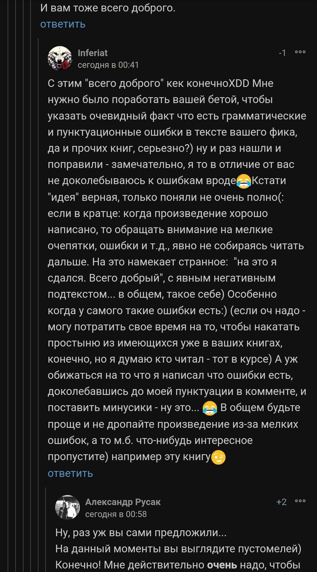 Я, Александр Русак, находясь в здравом уме и ясной памяти, приношу свои искренние извинения за "пустомелю" в адрес Inferiat-a [проживающего по адресу: https://author.today/u/inferiat1].