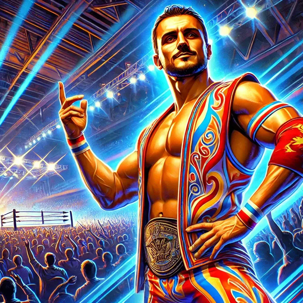 Внешность: Высокий, атлетически сложенный мужчина с выразительным лицом. Его фирменный образ — яркий костюм с элементами, напоминающими традиционные мотивы, и блестящий чемпионский пояс. Его руки украшены татуировками, отражающими его философию борьбы и победы.