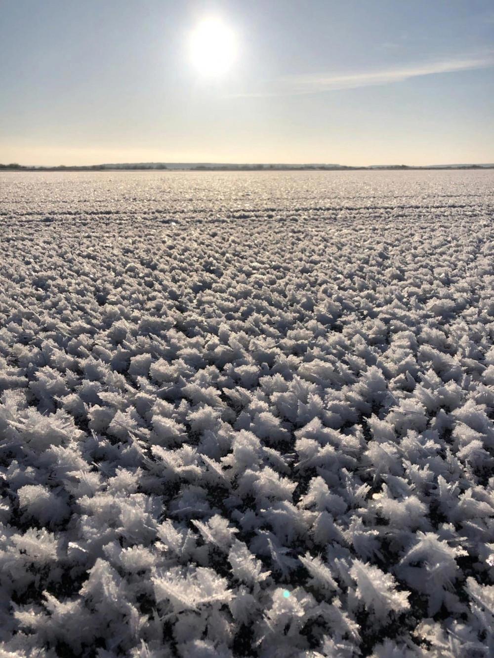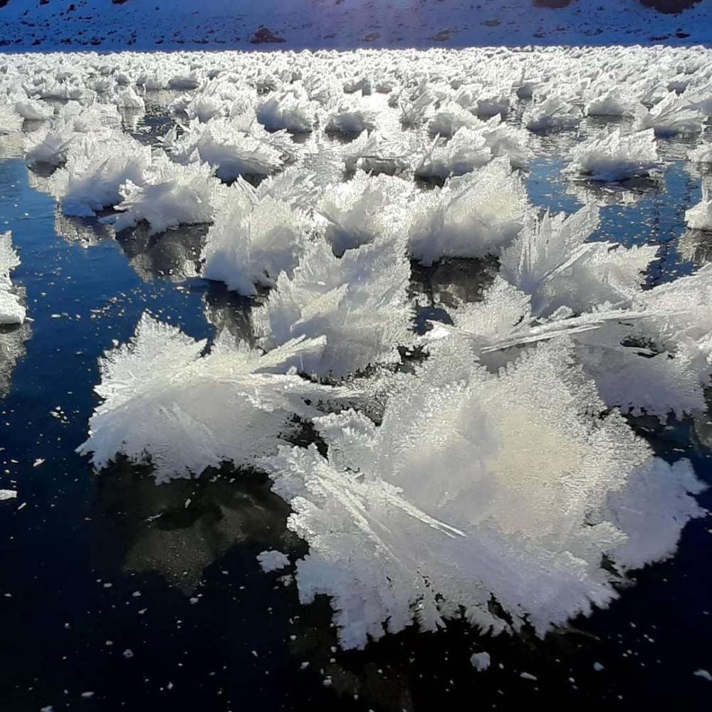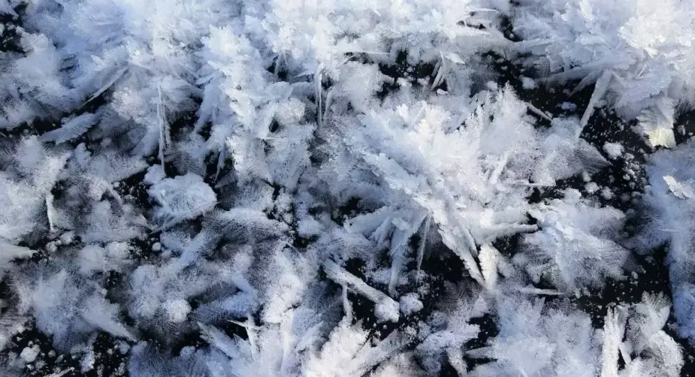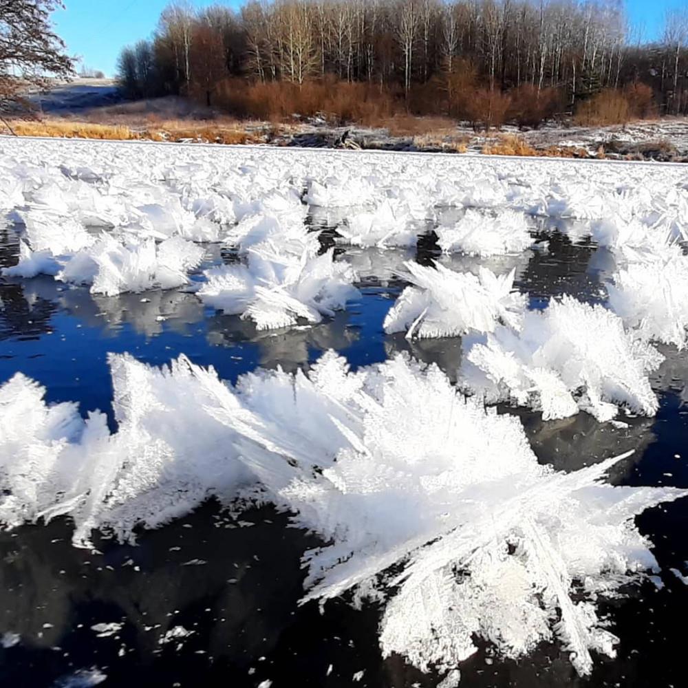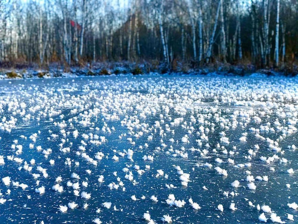 Возникнуть такие «кустики» ледяных кристаллов могут только на тонком, свежем слое льда при большой разнице между температурами ледовой поверхности и воздуха.