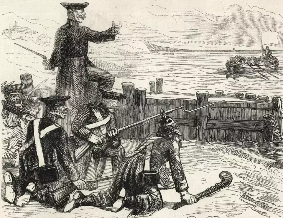 А кому всё-таки хочется узнать, что конкретно я имею в виду, то можете поинтересоваться порядком позабытым (а зря) событием времён крымской войны, которое англичане очень оригинально нарекли "Резнёй в Ханко", превратив провалившийся разведывательный рейд в "вероломное убийство парламентёров" (на изображении гравюра из английской газеты тех лет).