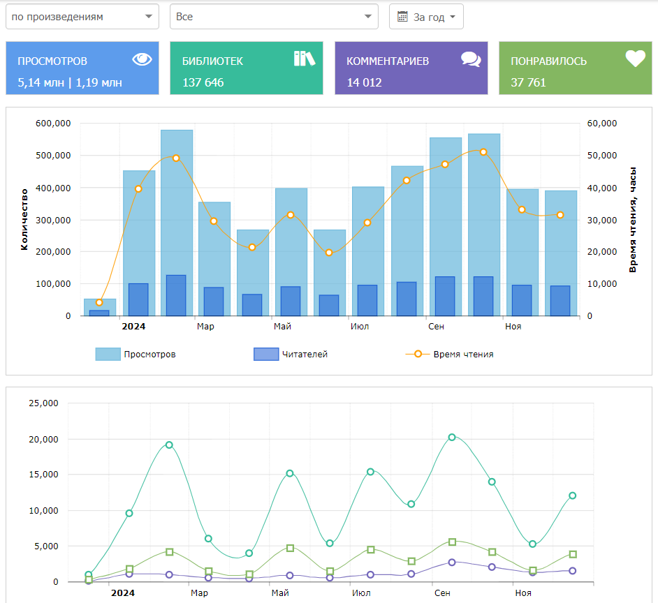 2. Электронные книги были добавлены в 137 тысяч библиотек на АТ. Вы поставили им больше 37-ми тысяч лайков. Плюс написали больше 14-ти тысяч комментариев.