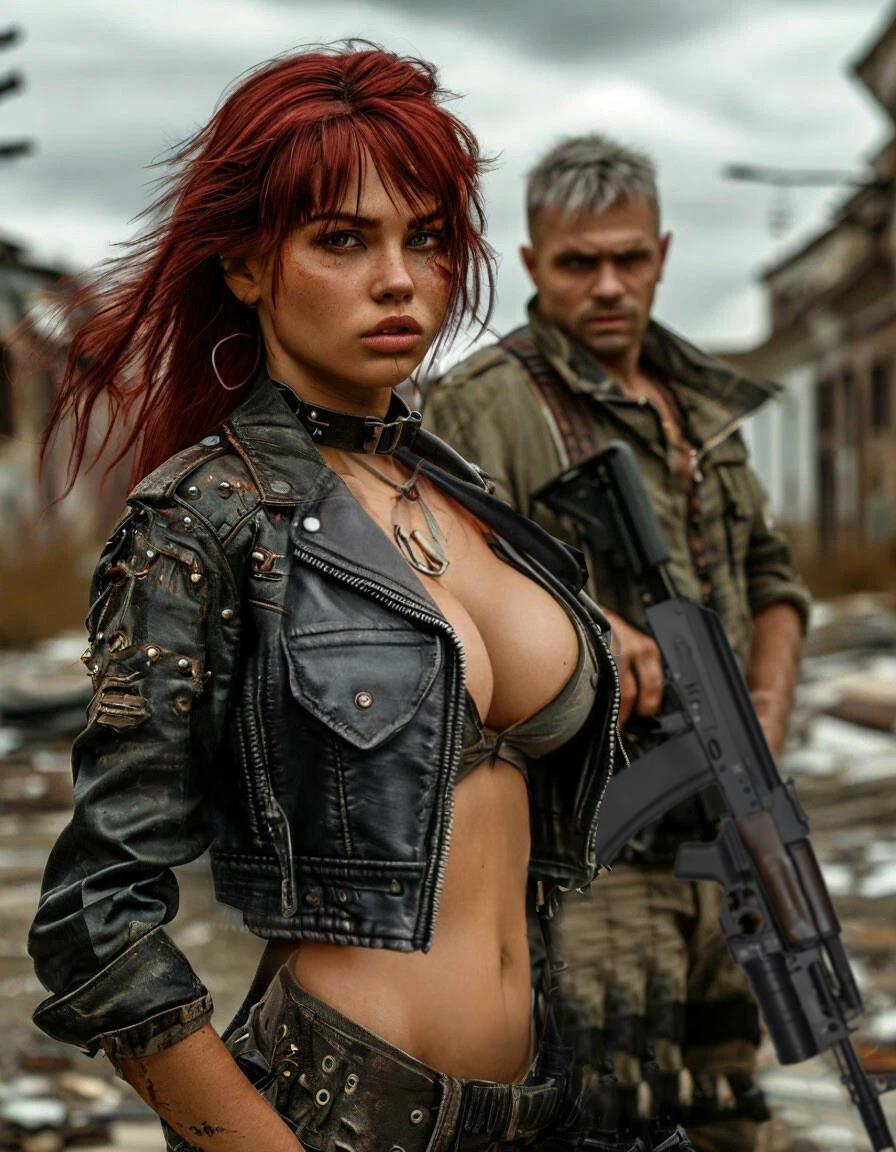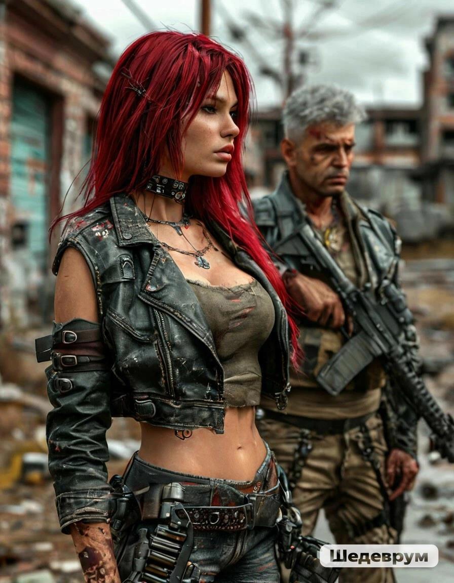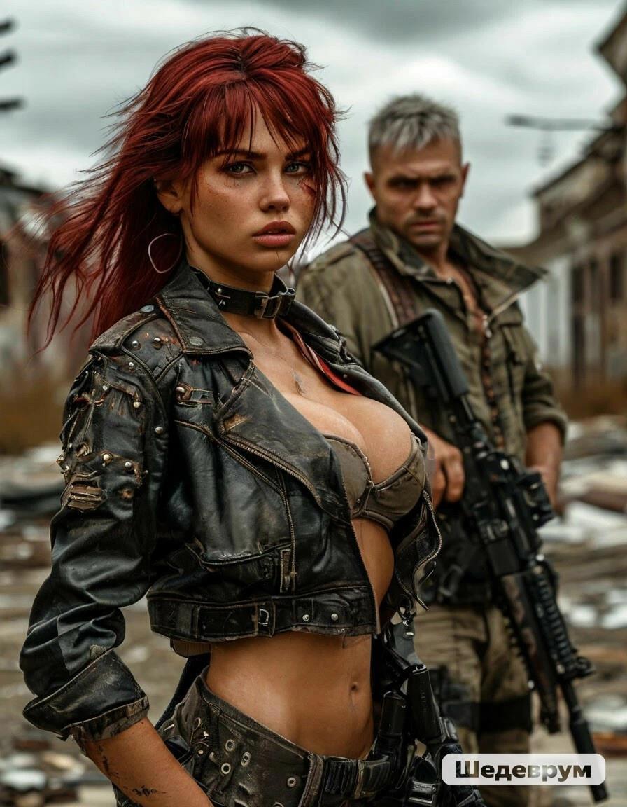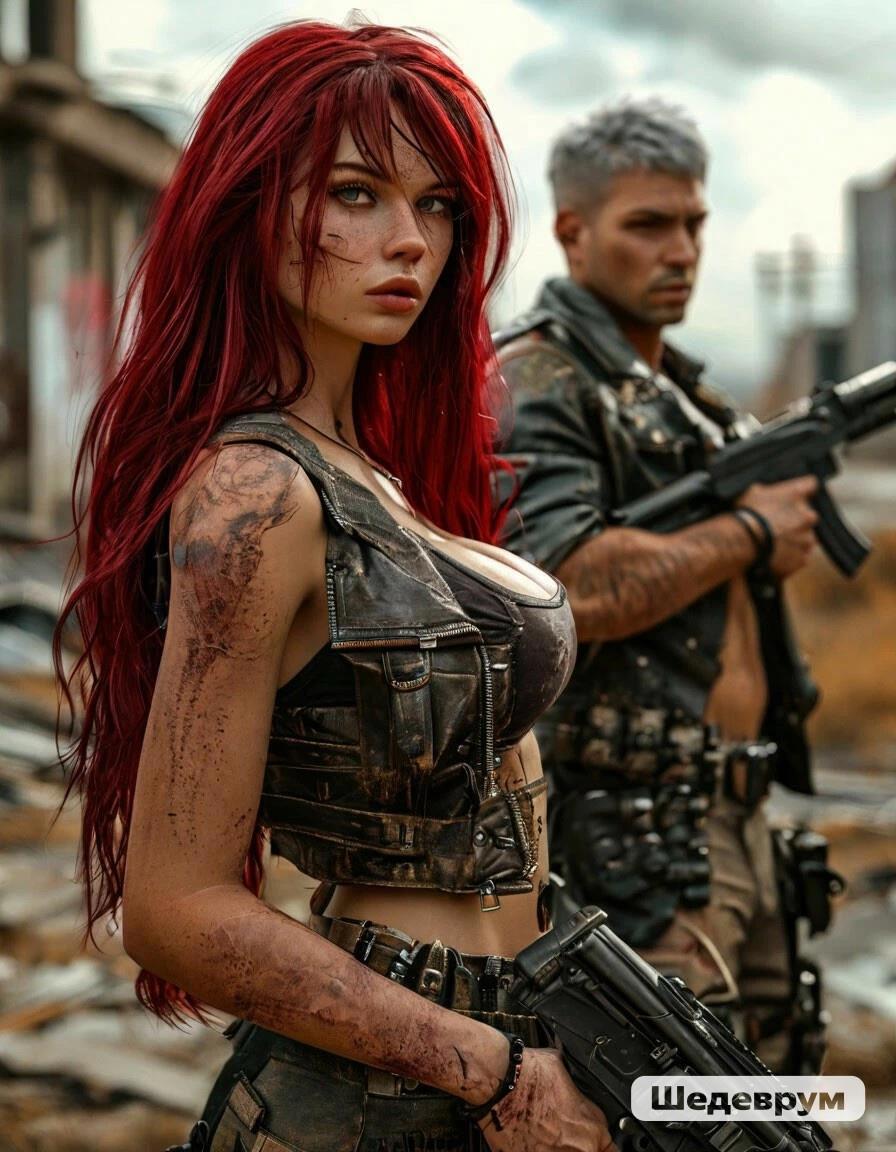 Данный результат пришёлся мне по душе, ведь тут уже было из чего выбрать. Я остановился на двух генерациях. На одной мне нравилось всё, кроме того, как выглядит грудь героини, а на другой — как раз именно этот момент. С оружием, как всегда, была проблема, и для этого пришлось лезть в интернет за картинкой автомата Калашникова с подствольным гранатомётом. А дальше… А дальше в дело вступил фотошоп, и я получил вот такой референс, который позже был отправлен в Leonardo AI с целью получения более детального изображения в лучшем качестве.