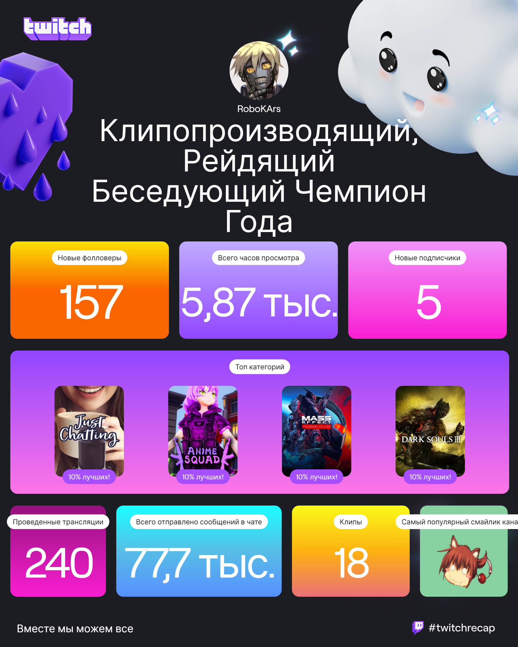 Плюс ещё мелкие результаты с Твича, Стима и прочего. Результаты, статистка и всё то, чем хотелось бы немного похвастаться)