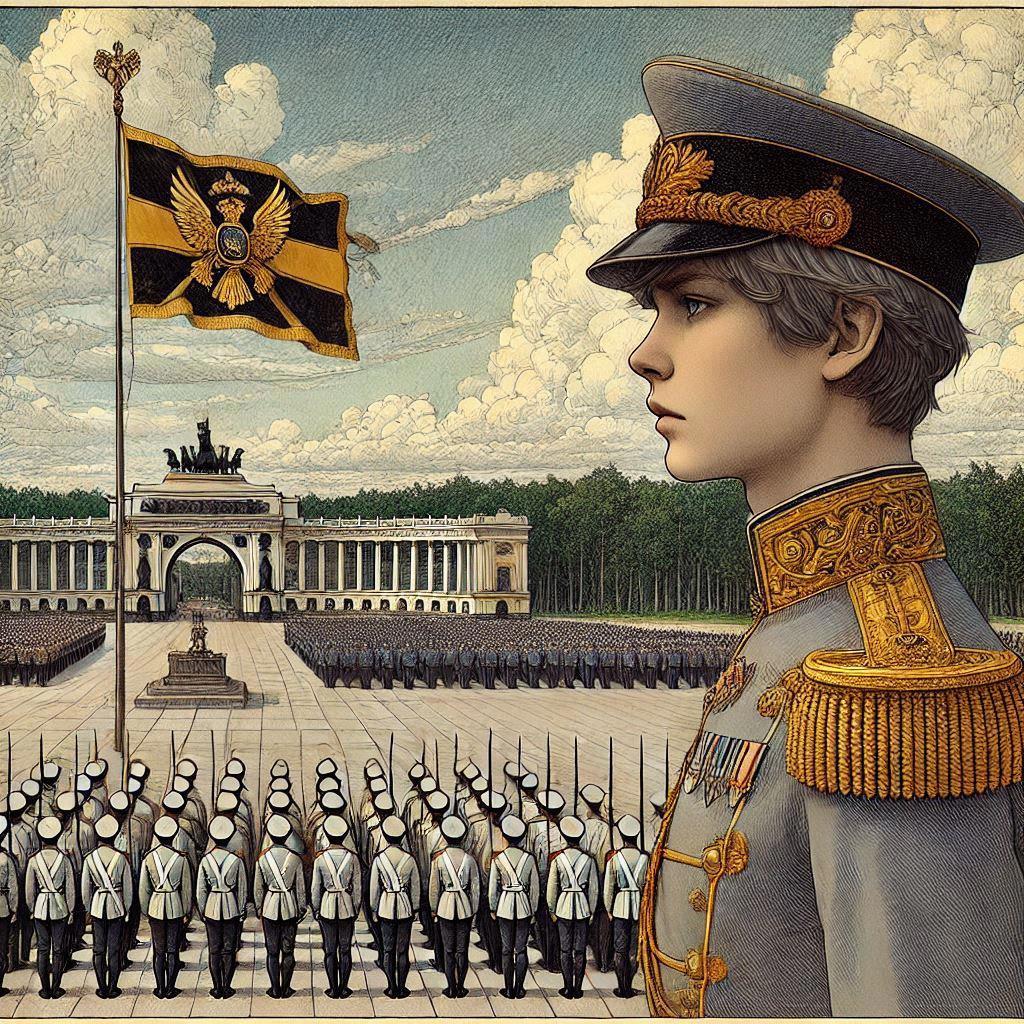Было свежо. Подул ветер. «Имперка» взвилась на флагшток, блеснул военный рожок в руках музыканта, солнце скрылось за облаком, и на плац упала тень.