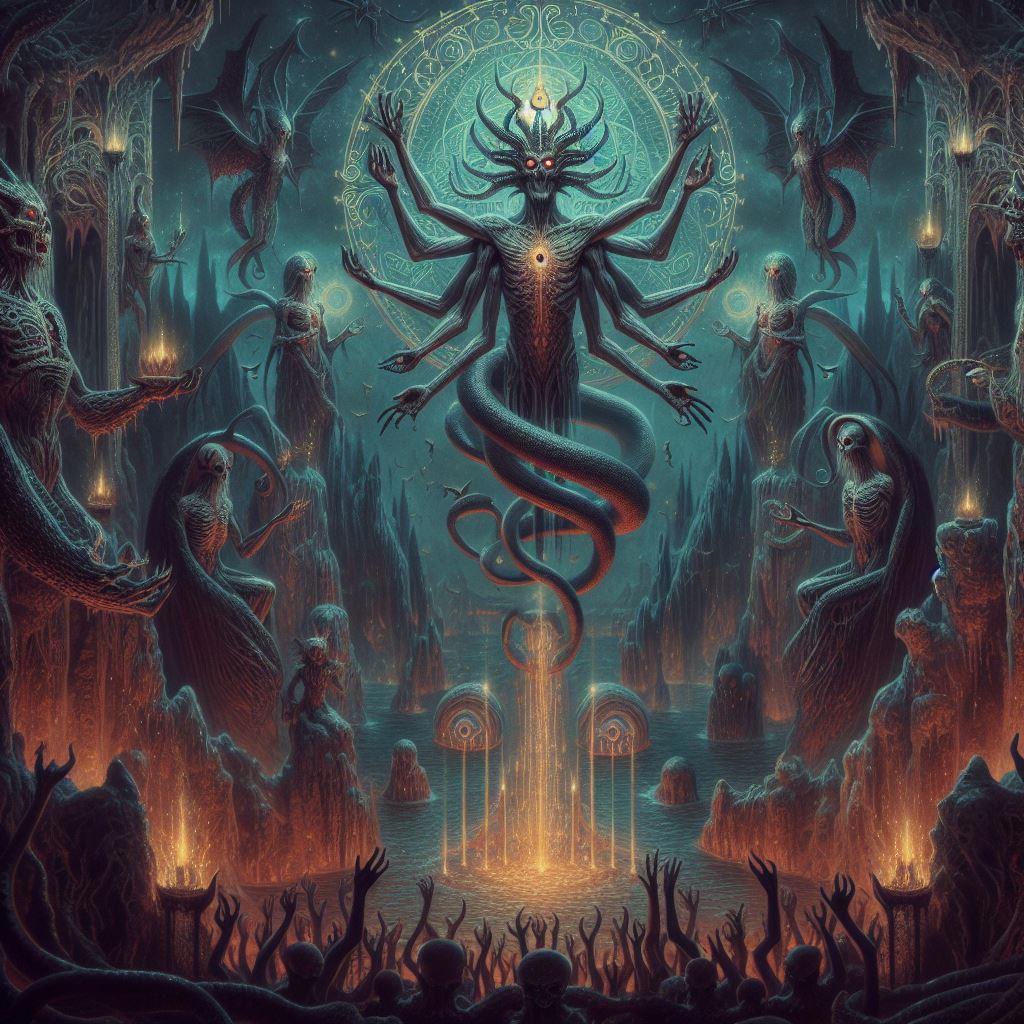 «Я повелеваю убрать внешний блеск, дабы было явлено лицо Змея. В звуках увидите вы лик Змея и запомните хорошенько слово, что лишь человек может изречь. Сим я поднимаю покрывало со Змея и помещаю его среди людей. О, услышьте! Змей обитает в месте, что иногда открывается миру…Огромное колесо с преломлениями в неведомых никому, кроме детей Сета, измерениях заполняет пустоту и становится подобным солнцу на Небосклоне Ярости!» (Антон Шандор ЛаВей «Die Elektrische Vorspiele»).