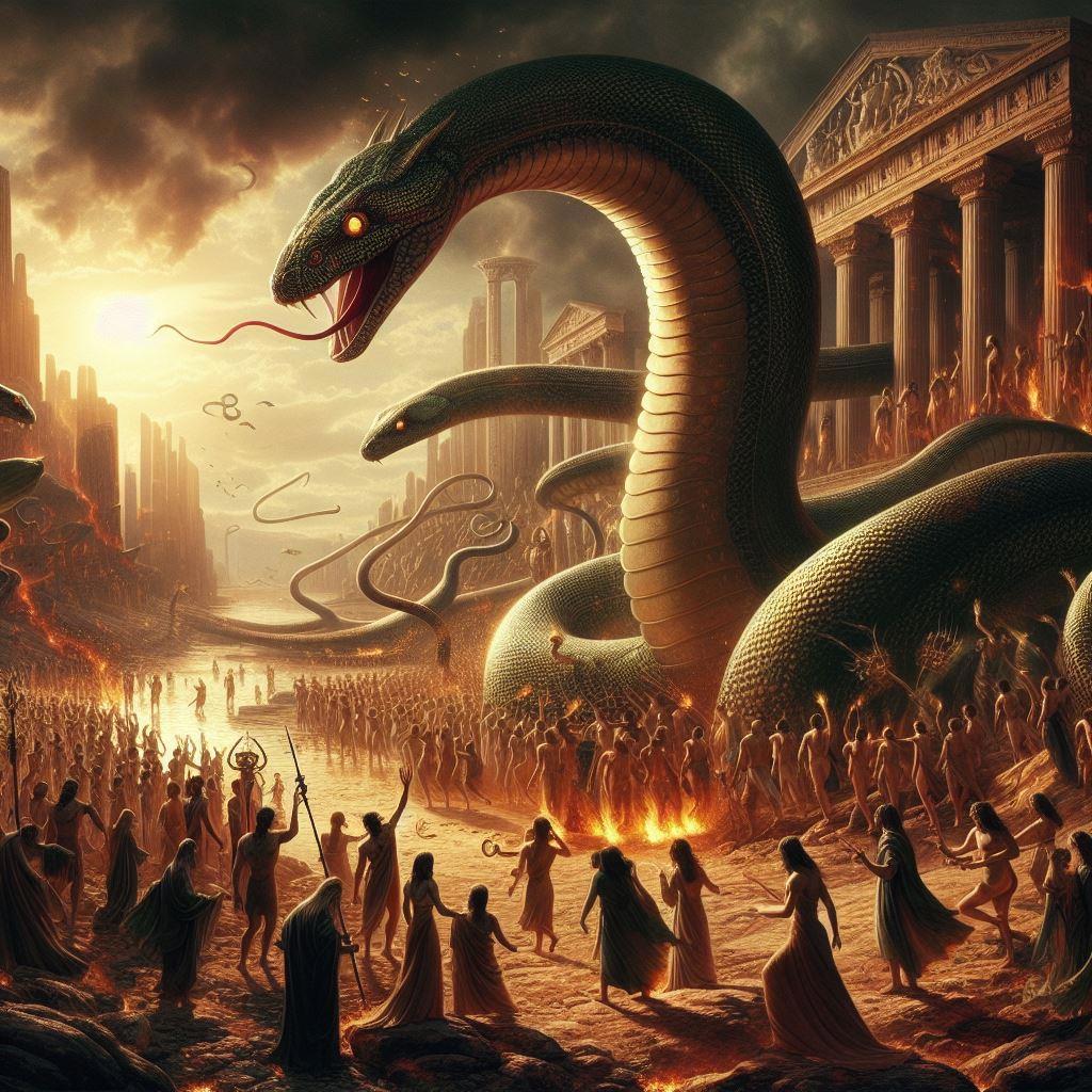 «Сатха был воплощением и средоточием первобытного зла для всего живого на Земле. Легенды о нем навсегда вписаны в анналы демонологии. Именно он, прародитель змей, известен в мифологии стигийцев, а затем египтян, под именем Сета, для семитов Сатха был Левиафаном, а христиане нарекли его Искусителем или Сатаной. Он был ползучей смертью, настолько неотвратимой и ужасной, чтобы удостоиться обожествления.»