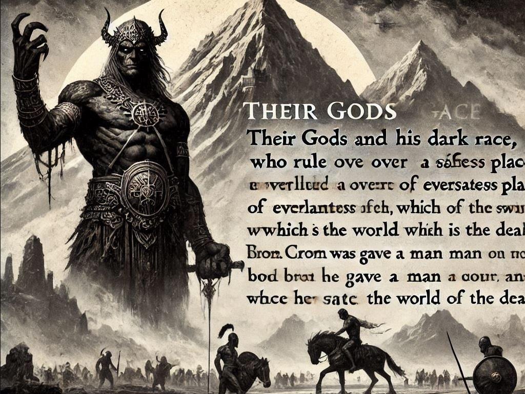 "Никогда еще не было более мрачной земли — холмы, покрытые темным лесом, под почти всегда серым небом, а в долинах уныло стонут ветры. У киммерийцев нет надежды ни здесь, ни в будущем.Их боги — Кром и его темный род, правящий темным местом вечного тумана, миром мертвых"