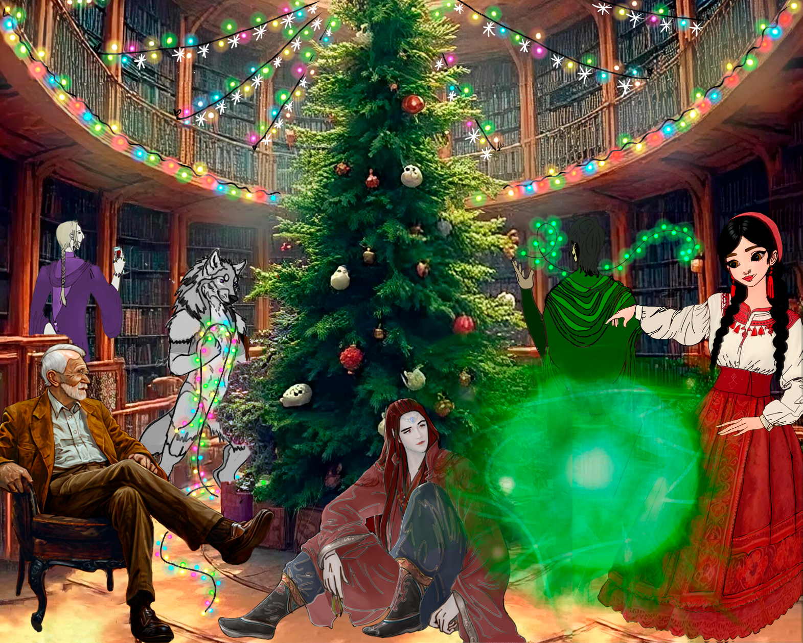 Наконец, Максимус Оптий. Пожалуй, самый замкнутый, и хоть он тоже пришел на праздник, но почти сразу сгинул в библиотеке. Пришлось елку там наряжать и саму библиотеку украшать к новому году, потому что мистер Оптий не желал ее покидать. Только изредка, чтобы выпить крови.