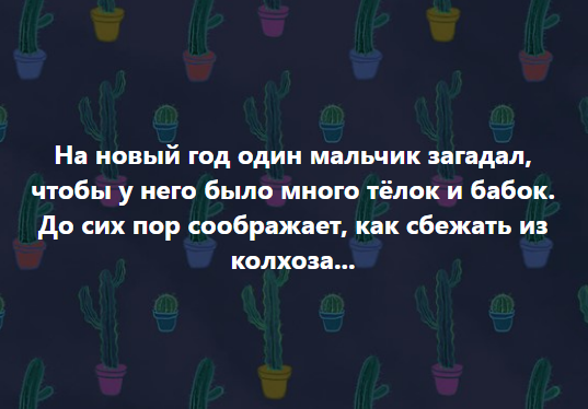 Проснулась с диким кашлем и насморком, сказала: "Здравствуй, жопа новый год", пошла пить таблетки. Естественно, праздник встречать будем с чем-то таким: