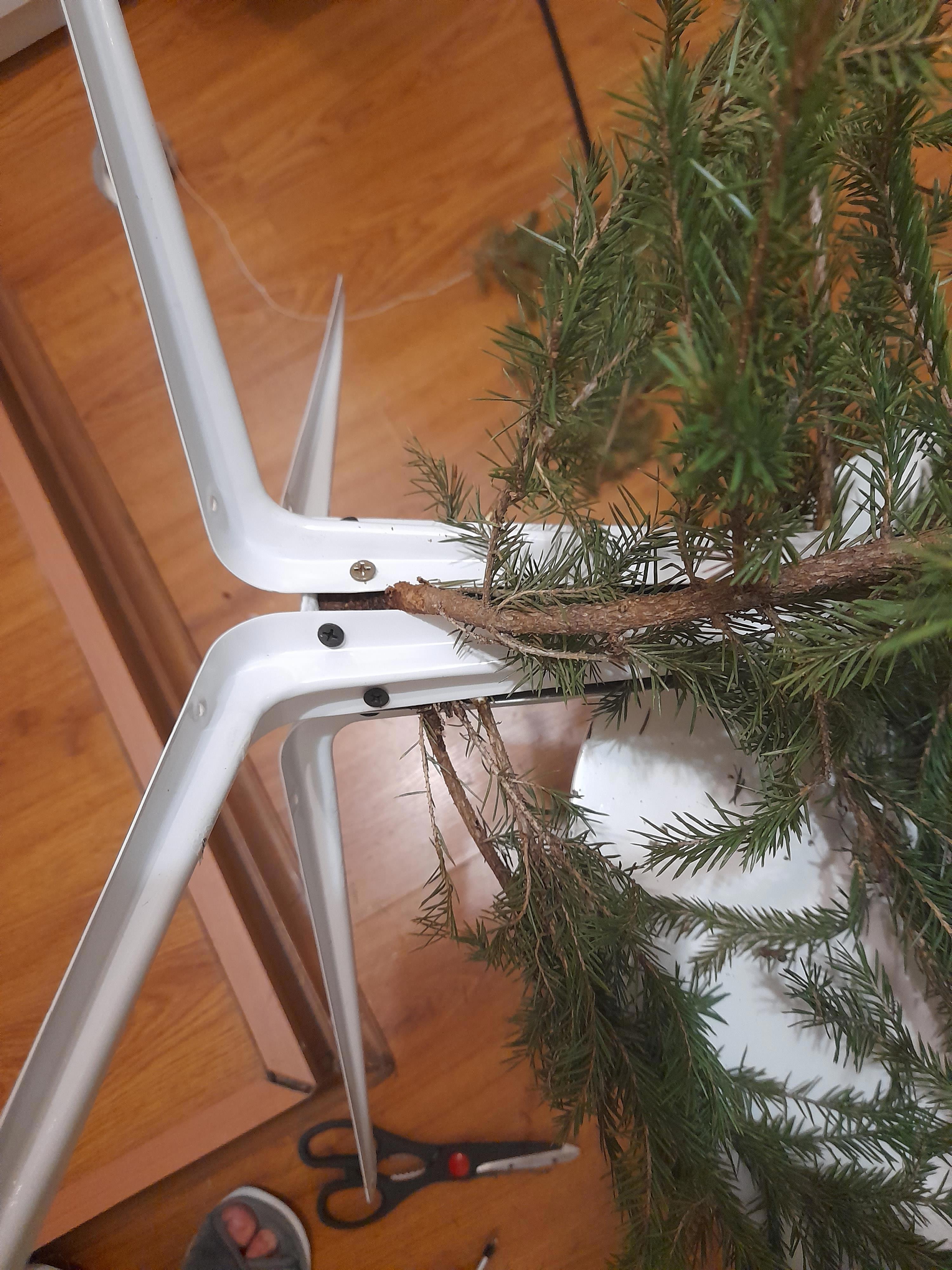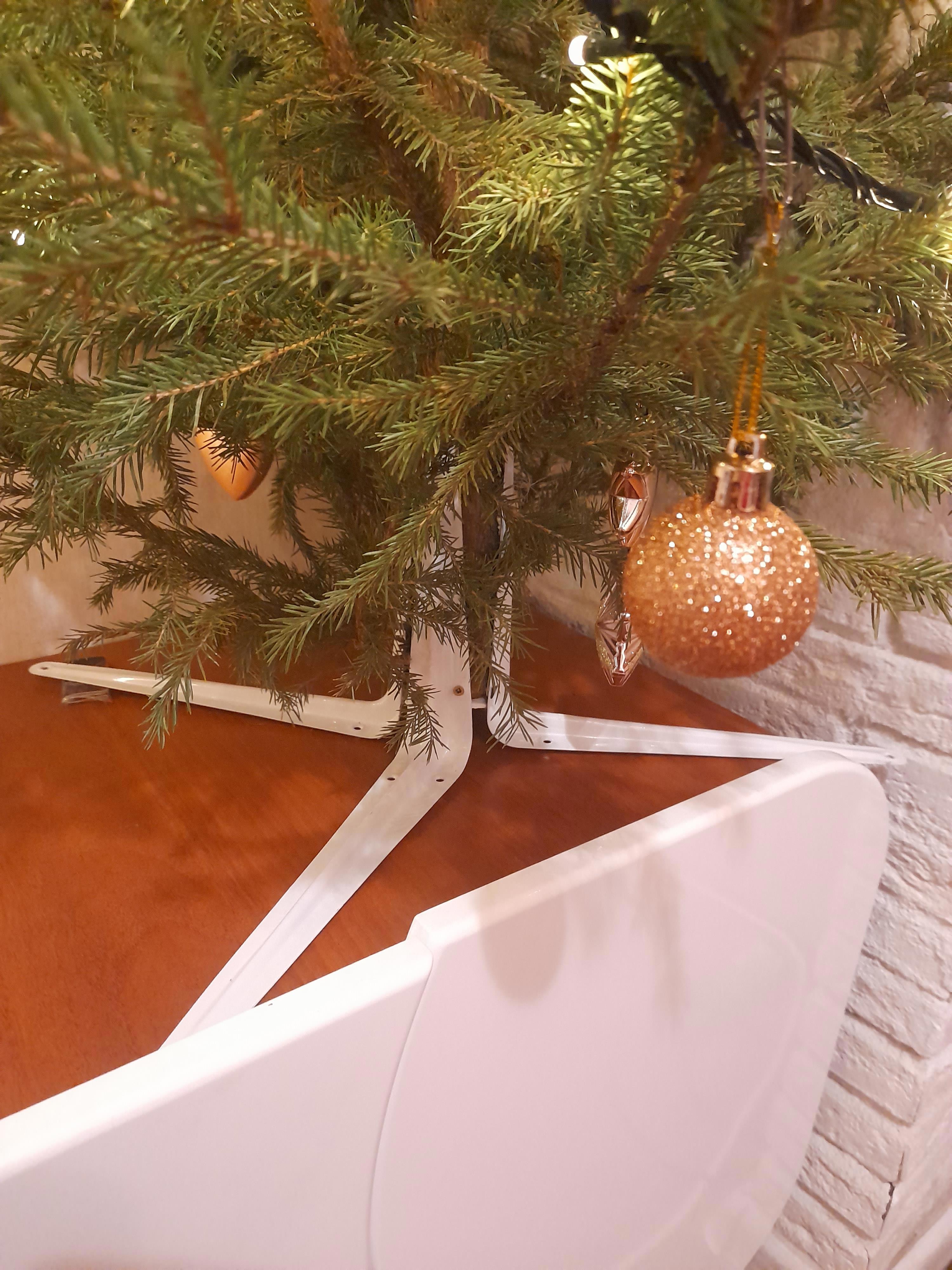 Елку установила на кронштейны, потому что стоимость крестовины в половину елки!