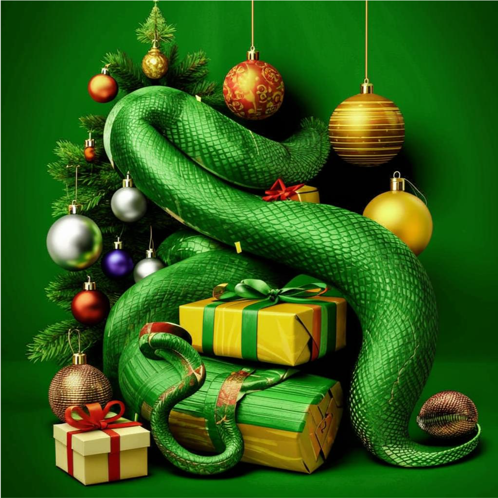 Автор: Ана АдариЗелёная древесная змея поздравит вас сейчас, не только я) восточное упорно входит в моду, а мы по-русски скажем: С Новым годом!