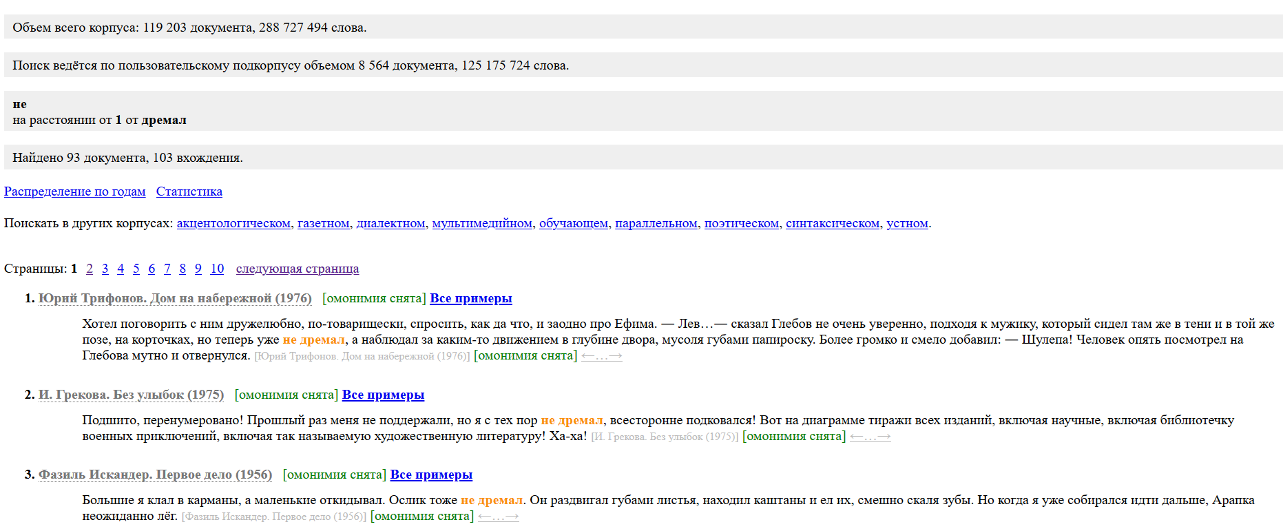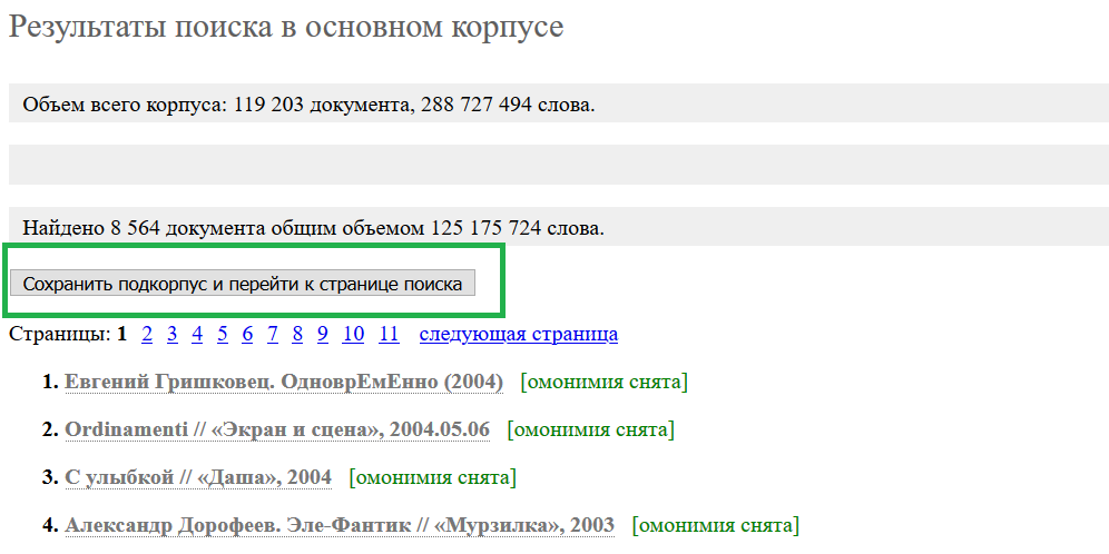 Подкорпус сформирован. Можете сохранять его и переходить уже к собственно поиску