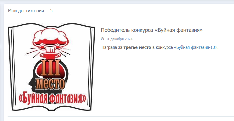 Занял 3-е место на конкурсе рассказов "Буйной фантазии"