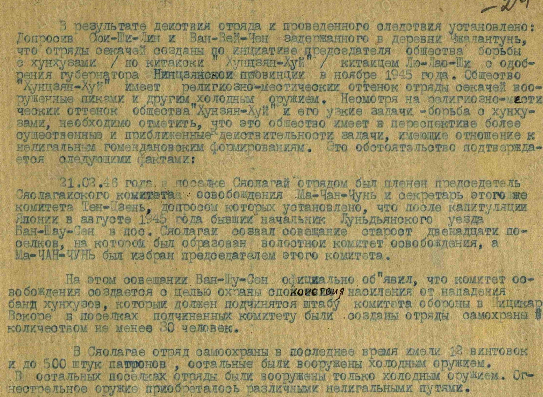 Автор: Андрей УлановПоскольку в 1945-м году АТ еще не было и знакомство с китайской культурой среди офицеров Красной Армии было в зачаточном состоянии, попытки китайцев организовать своих героев-культиваторов у товарищей командиров закономерно вызывали реакцию: кто все эти люди и чего им надо?