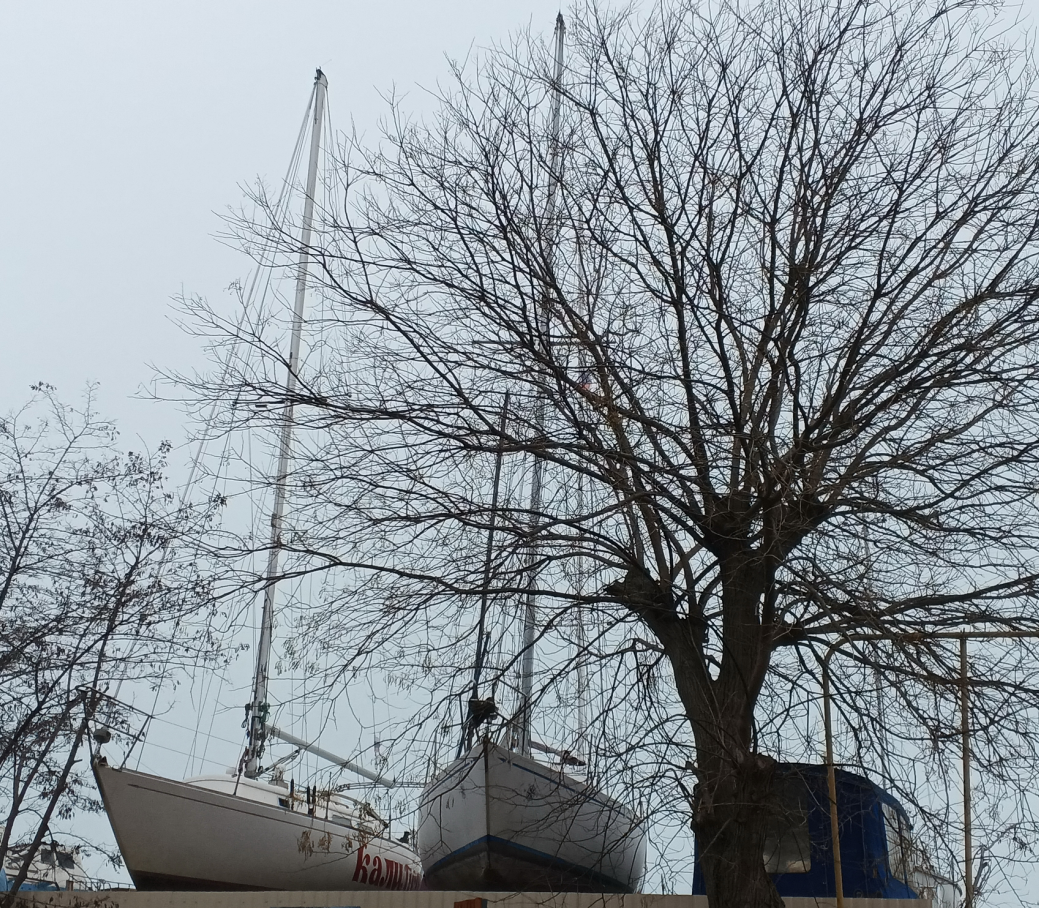 Дальше мы подошли к стене, насколько можно понять, за этой стеной стоят на зимнем приколе малые частные суда (яхты, лодки, ялики), ну и сфотографировали несколько из них тоже.