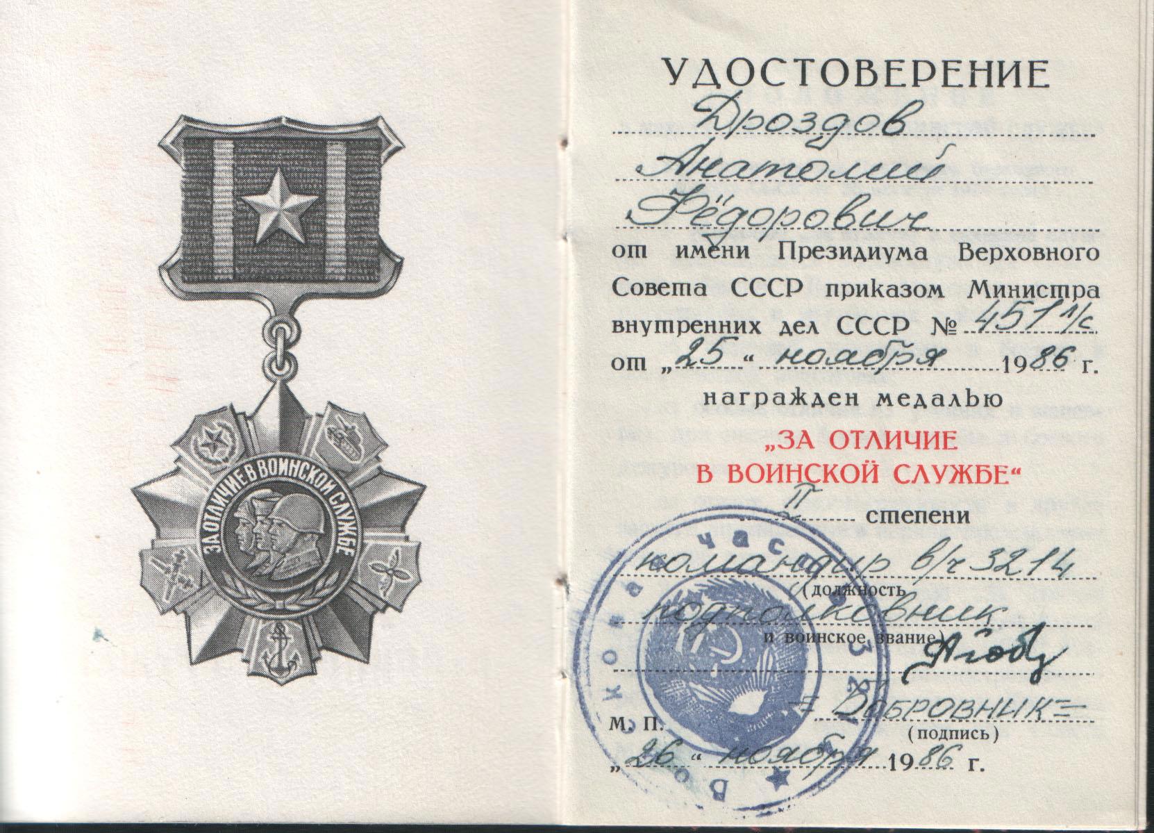 Удостоверение к медали (фото А. Ф. Дроздова)