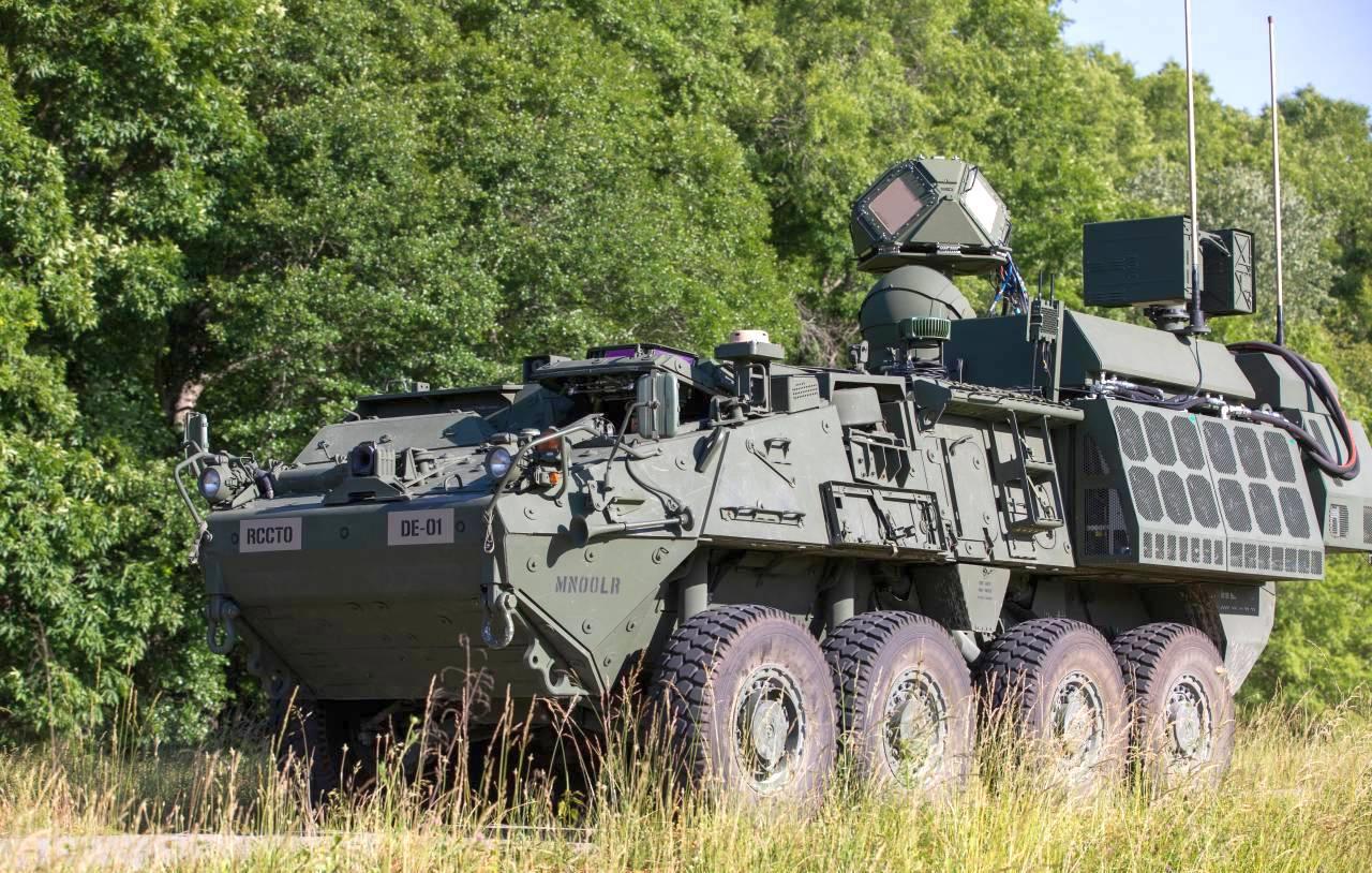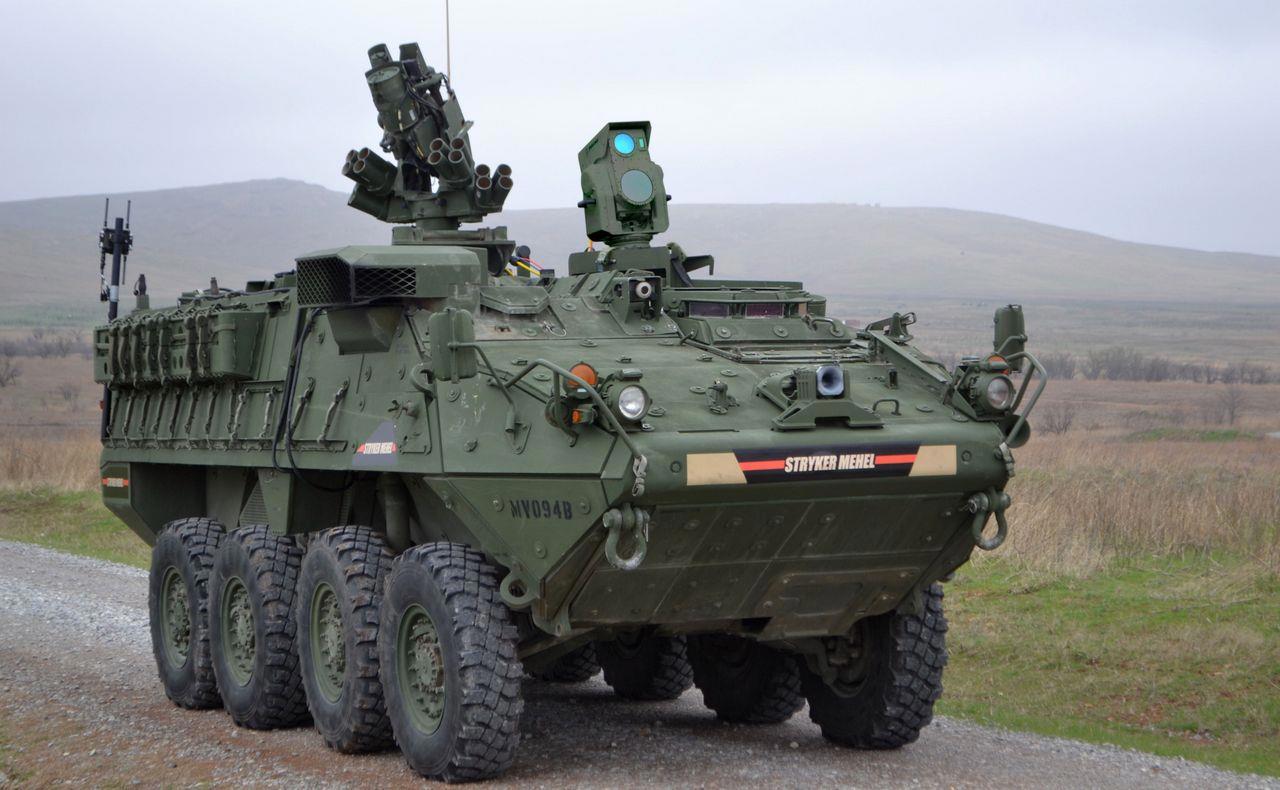 А вот ещё один БТР «Страйкер», но уже с лазерной установкой MEHEL (Mobile Experimental High Energy Laser) мощностью 10кВт: