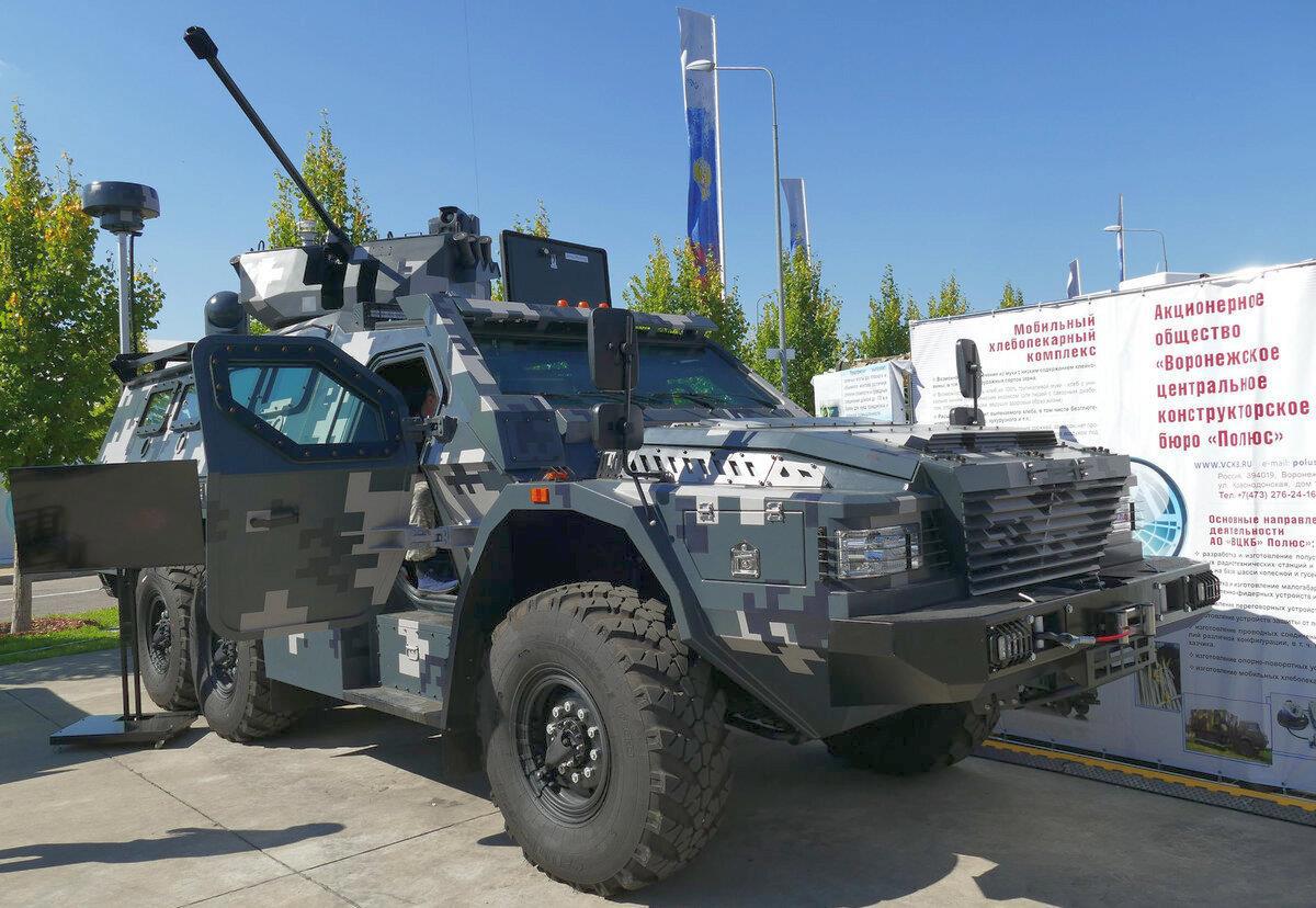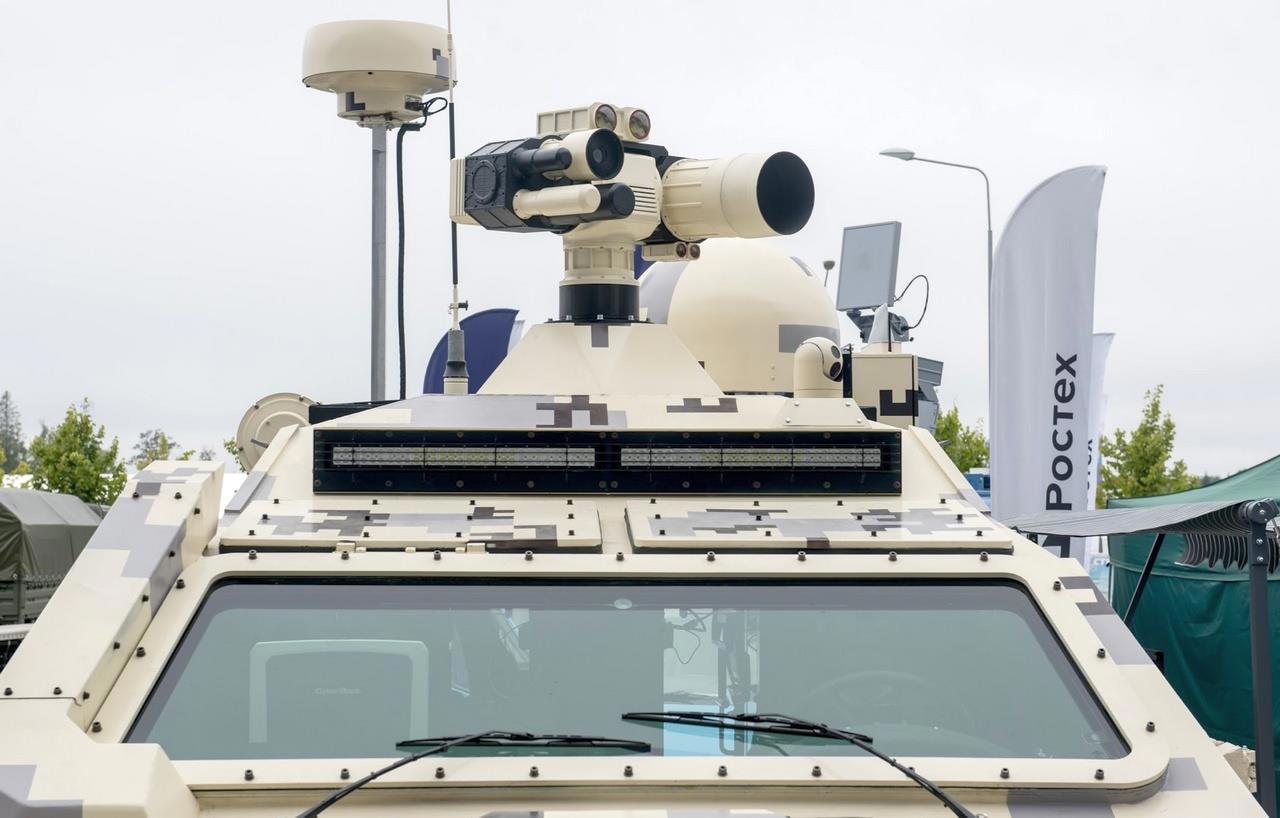 Из того, что показывают на выставках в этом типе вооружений, можно помянуть комплекс «Рать». Главным элементом на нём сейчас, наверное, можно считать локатор и оптико-электронную станцию сопровождения цели, которые могут обнаруживать малоразмерные цели на дистанции до 4 км. Средством поражения супостата является боевой лазер… сначала являлся. Вот этот комплекс, сделанный на базе бронированной машины СБА-70К4: