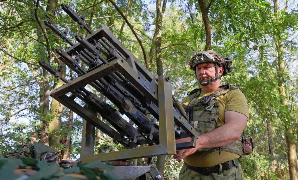 Однако ж это со стороны всё легко, а тем, кто результаты действия этих самых спутников с беспилотниками на себе чувствуют, так не кажется. И это им приходится совершать эпические подвиги прямо сейчас, чтобы этим напастям противостоять. Причём действовать нужно быстро – размышлять особо некогда. Поэтому сначала в действие вступает та самая «солдатская смекалка». И вот уже на полях сражений появляются самодельные антидроновые средства борьбы. Например, берём пяток автоматов и объединяем их во что-то сильно напоминающее многоствольные системы времён Великой Отечественной войны: