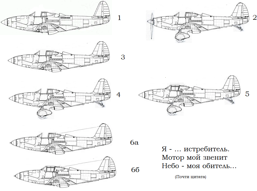 2-й кабина закрытая (фонарь сдвинут), неубираемое шасси, новый киль