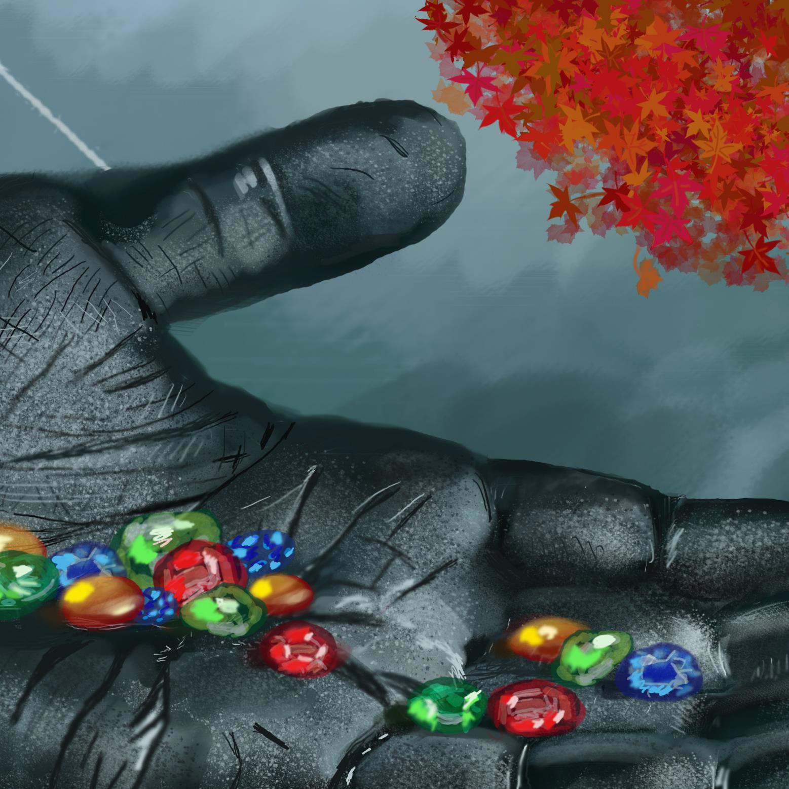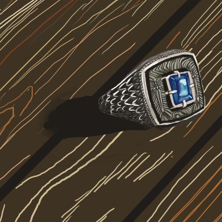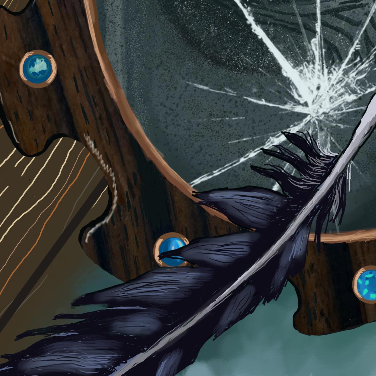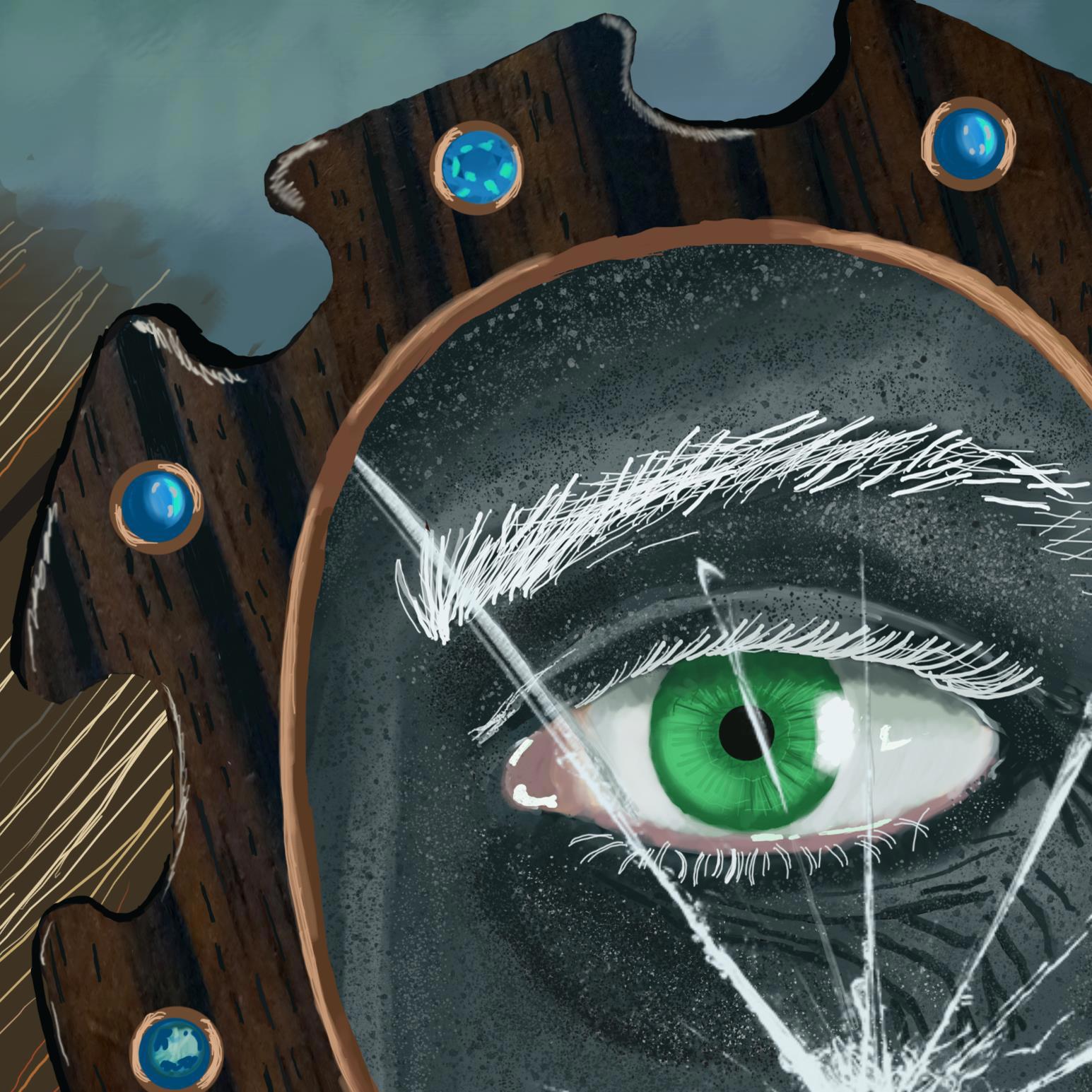 Автор: М. ДжалакЗеркало, самоцветы на ладони героя, священный перстень, патроны к револьверу и перо. Зеркало - это по задумке что-то в стиле ван Эйка. Отражение не разбито так, как следовало бы, потому что это выглядело слишком отталкивающе и жестоко.