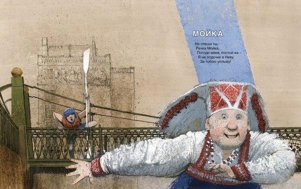 — Идея изображать реки в образе людей не нова. Известны скульптуры Нил, Дунай, Ганг.... В иллюстрациях представители тех национальностей, которые давали название этим рекам. Например, название речки Мойки происходит от ижорского Муя (Мья). Отсюда и образ речки как женщины в национальном ижорском костюме.