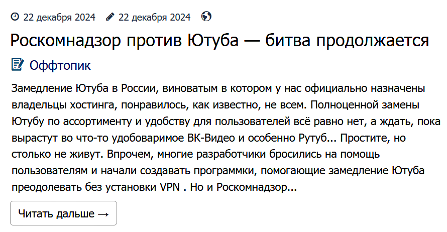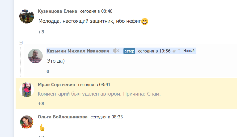 Самое забавное - это двуличность которую проявляет Казьмин Михаил Иванович, не так давно, он публиковал возмущение против борьбы РКН с YouTube, но как только правдивая информация помешала ему собирать плюсики - тут же использовал тактику РКН - взял и удалил техническую информацию с пояснением, объявив ее спамом!