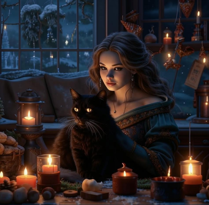 Ведьма Аня тоже подустала от бесконечной беготни и осталась в деревне с котом: