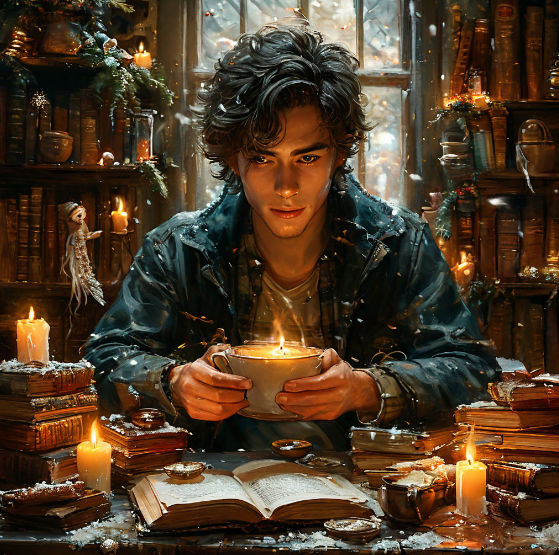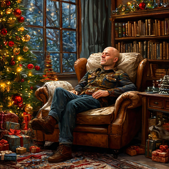 Вот Василиса наряжала ёлочки в компании с Изюмом, а Новиков заснул прямо в кресле. Наверное, ему приснилось, как он крошит упырей) От удовольствия даже почёсывается.
