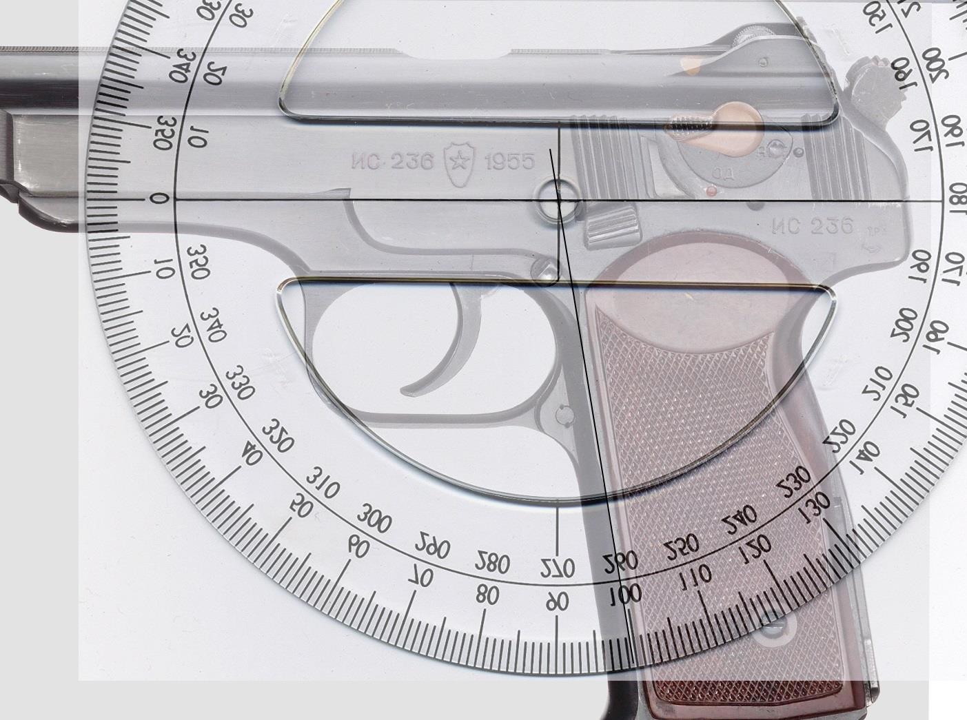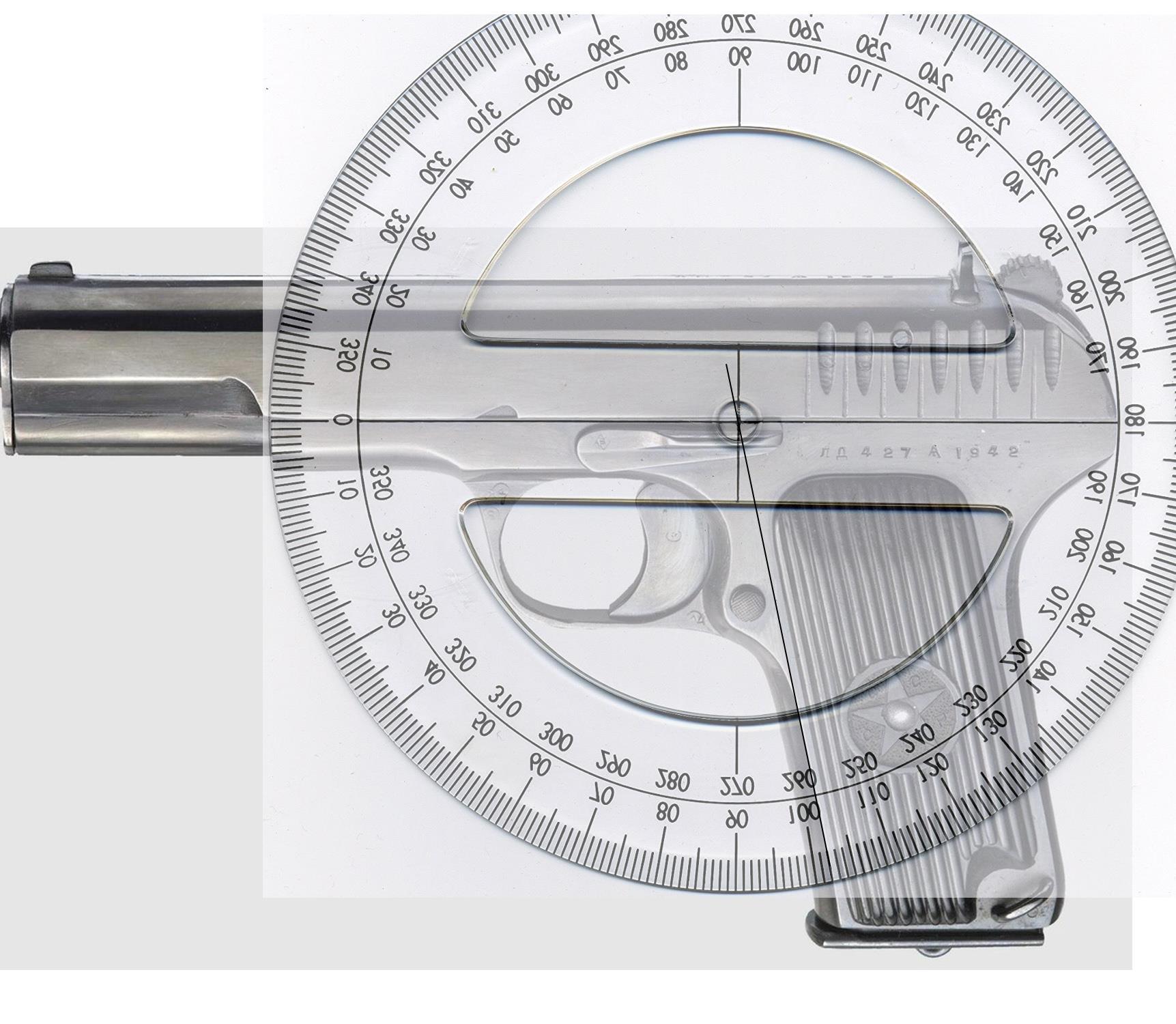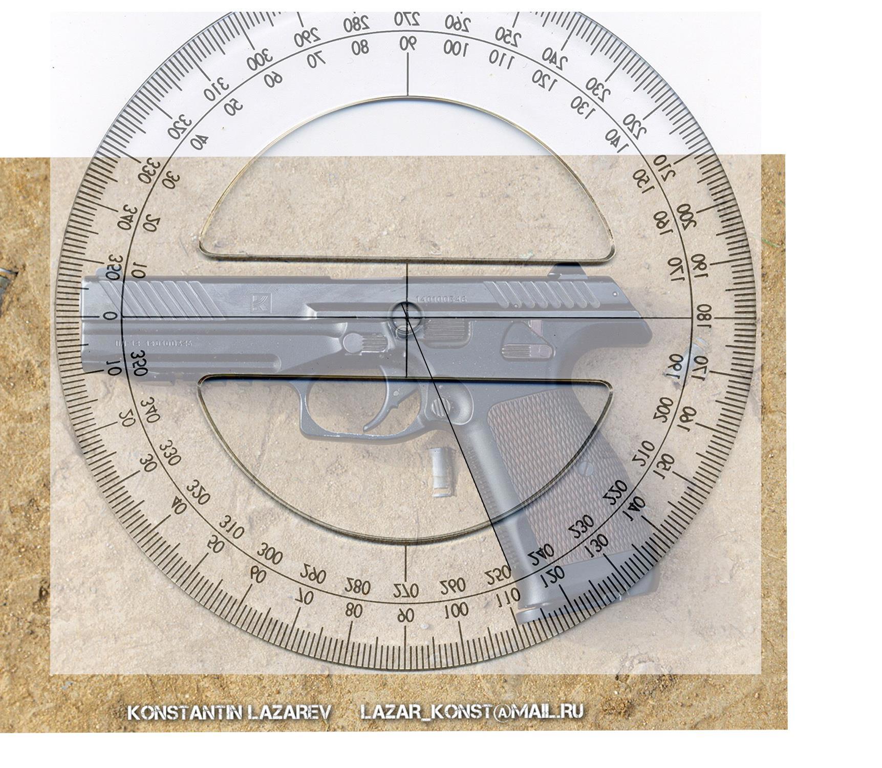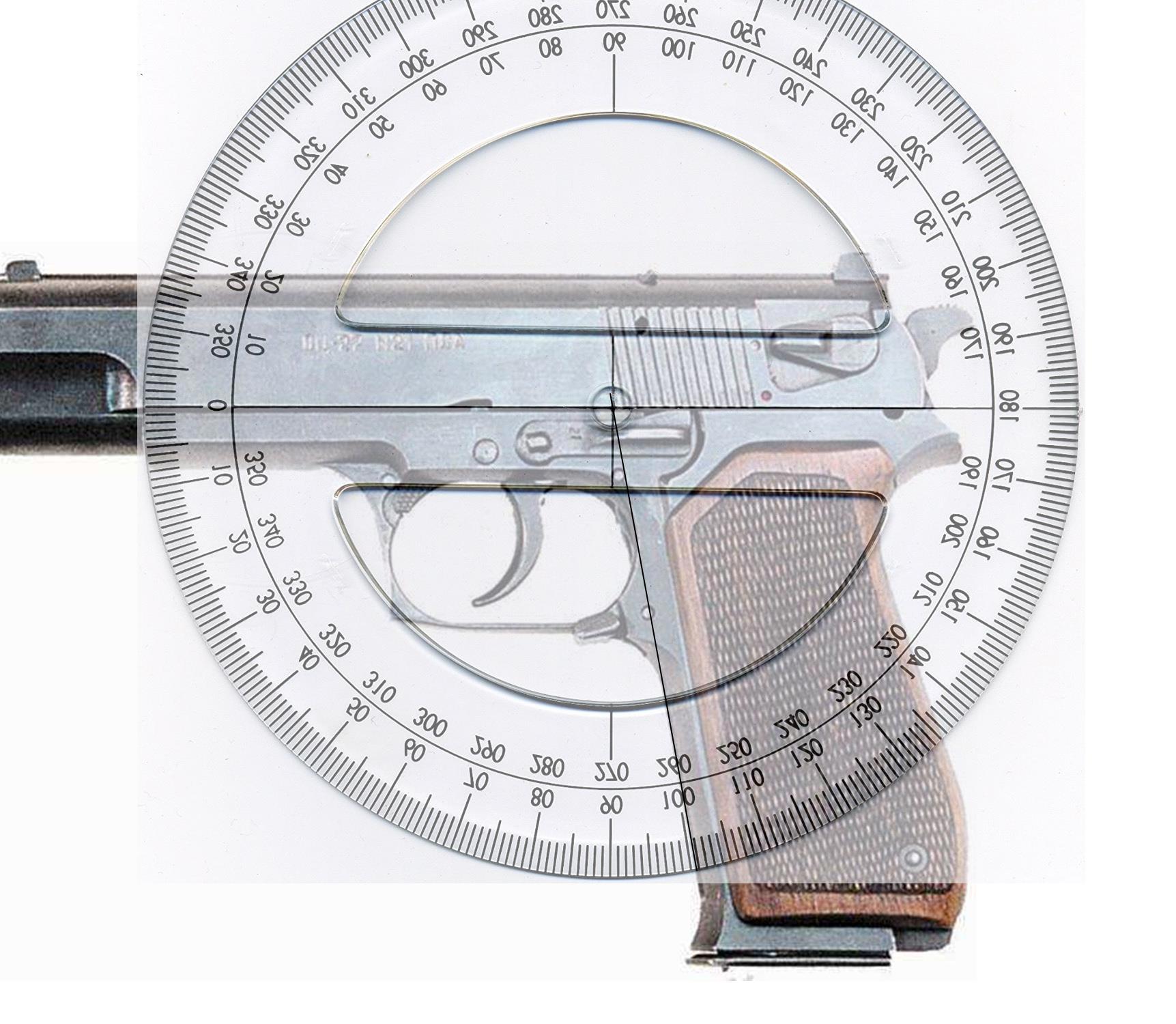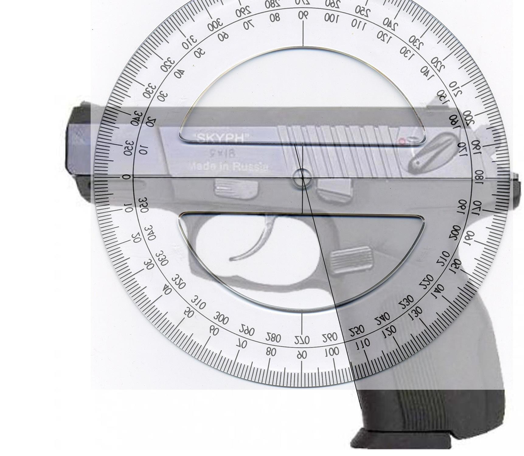Чтобы прояснить ситуацию уточню, что угол в 101 градус означает, что ваша кисть будет стремиться опустить прицельную линию на несколько градусов ниже цели, ввиду анатомических особенностей скелета человека, и вам постоянно придётся доворачивать пистолет вверх. 105 градусов это минимум, при котором вам будет комфортно целиться. Ещё, слишком маленький угол наклона рукоятки негативно влияет на подброс ствола. Почему это было неизвестно разработчикам наших пистолетов непонятно. Я нахожу лишь одно объяснение - пистолеты в СССР никому нафик были не нужны.