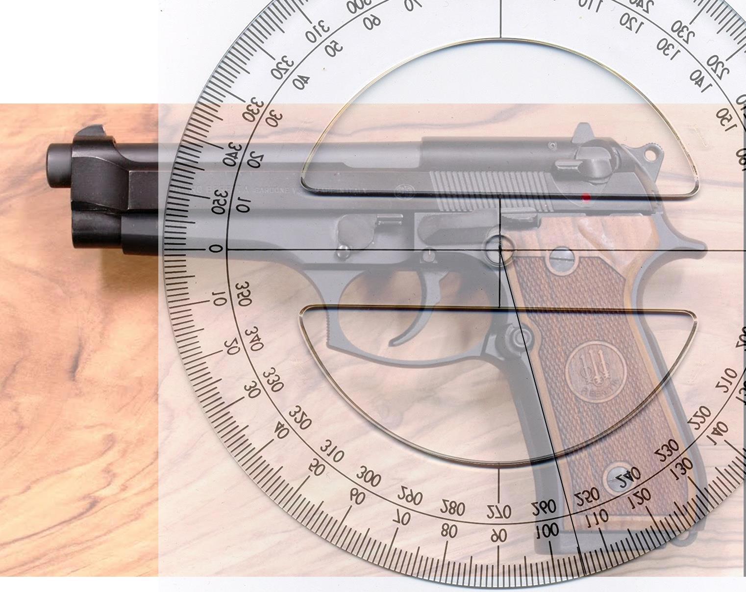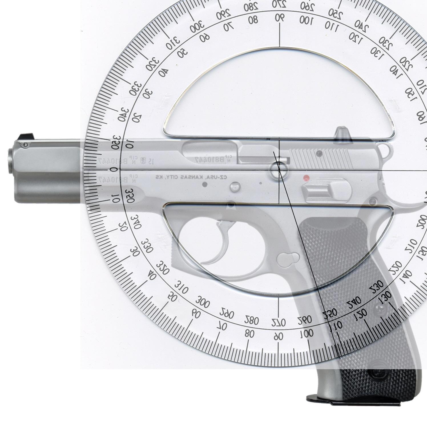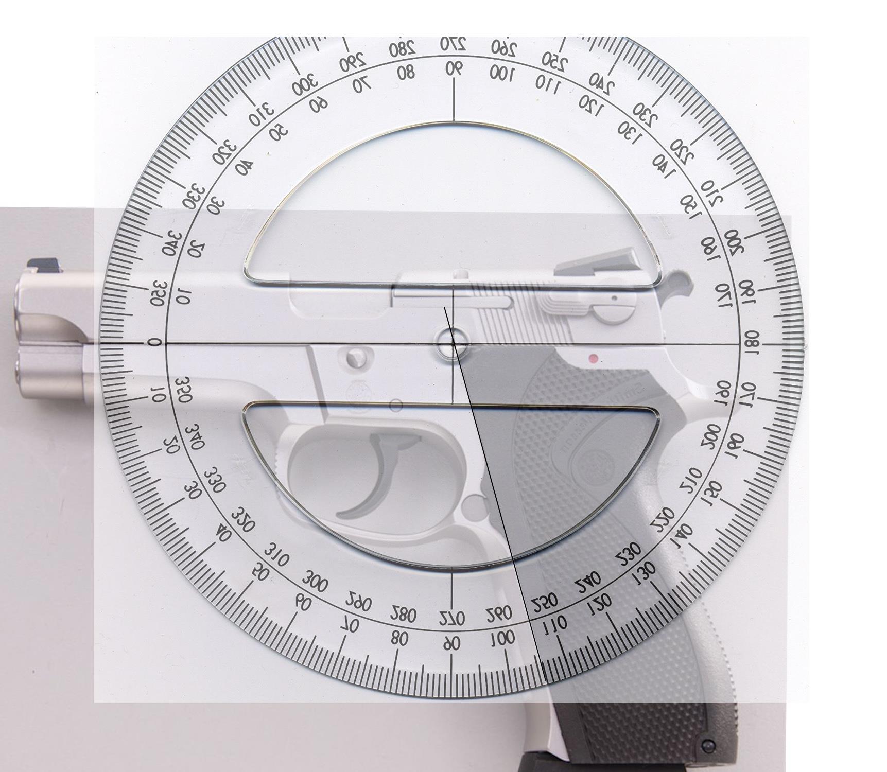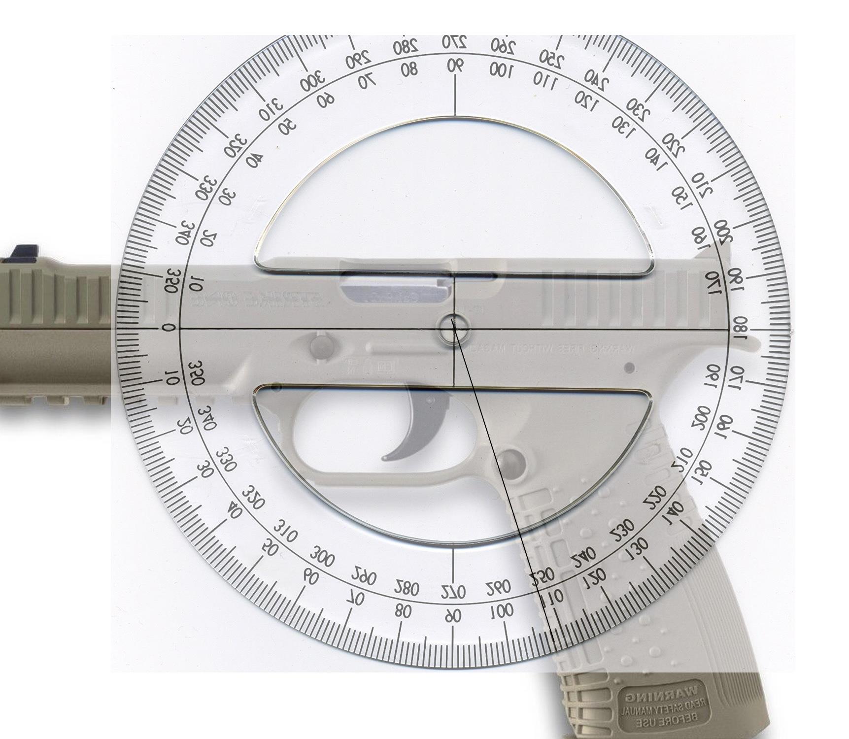 Тут следует добавить, на что влияет угол наклона рукоятки, - он влияет на большое количество параметров пистолета, начиная от удобства удержания в руке, заканчивая компенсацией отдачи. Но самый важный параметр это скорость, с которой стрелок наводится на цель. Так вот, при анатомическом угле наклона прицельная линия пистолета совпадает с направлением взгляда. То есть, вы просто вытягиваете руку в сторону цели и ствол пистолета уже направлен в то место, куда вы целитесь. Если же угол наклона рукоятки неправильный или недостаточный, то вам надо довернуть пистолет на несколько градусов по вертикали, прежде чем начать прицеливание. Ну и, соответственно, кто раньше прицелился, тот раньше выстрелил.