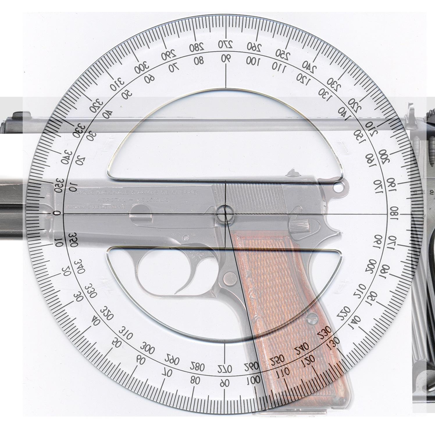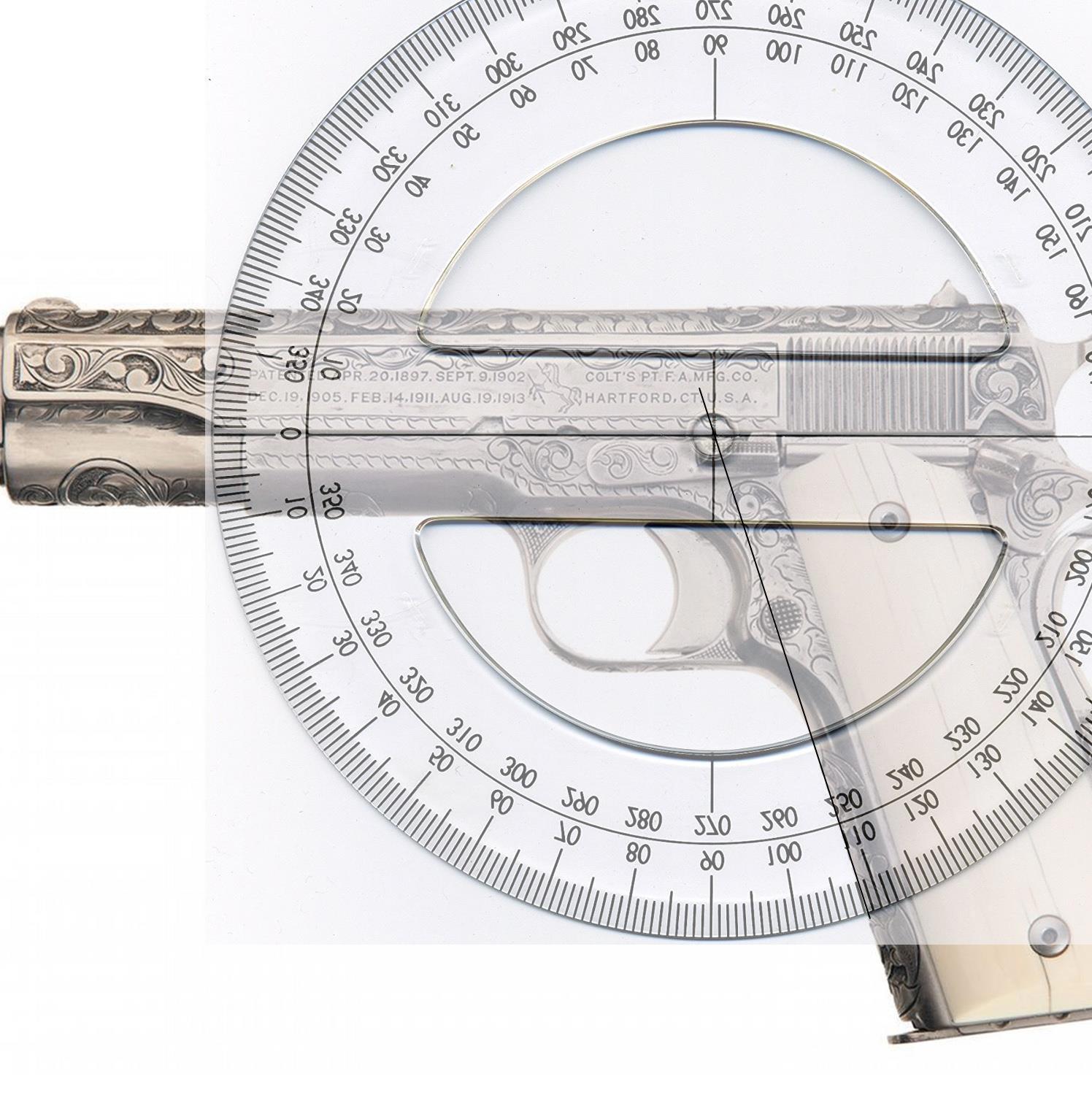 Примерно в то же время свои пистолеты создавал Джон Браунинг. Изначально он вообще не признавал никакой эргономики и для своего Кольта 1900 использовал угол в 99 градусов.