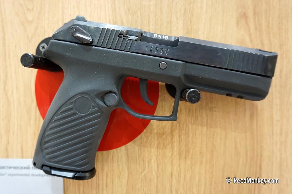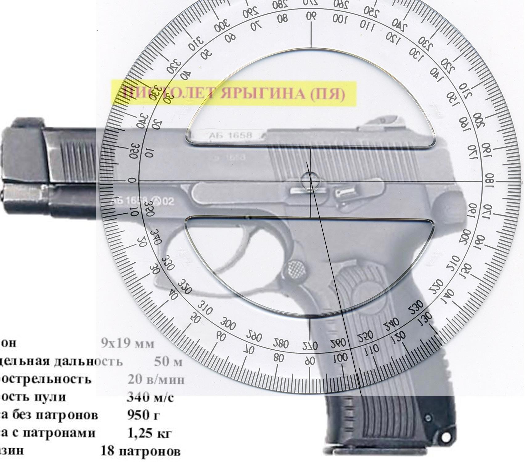 Слава богу, не все конструкторы в 90-е безнадёжно отстали от мировых тенденций. К примеру, Ярыгин, своему ПЯ дал рукоятку с углом наклона в 104 градуса, что уже терпимо. Ну и в целом пистолет вышел неплохим с автоматикой на коротком ходе ствола.