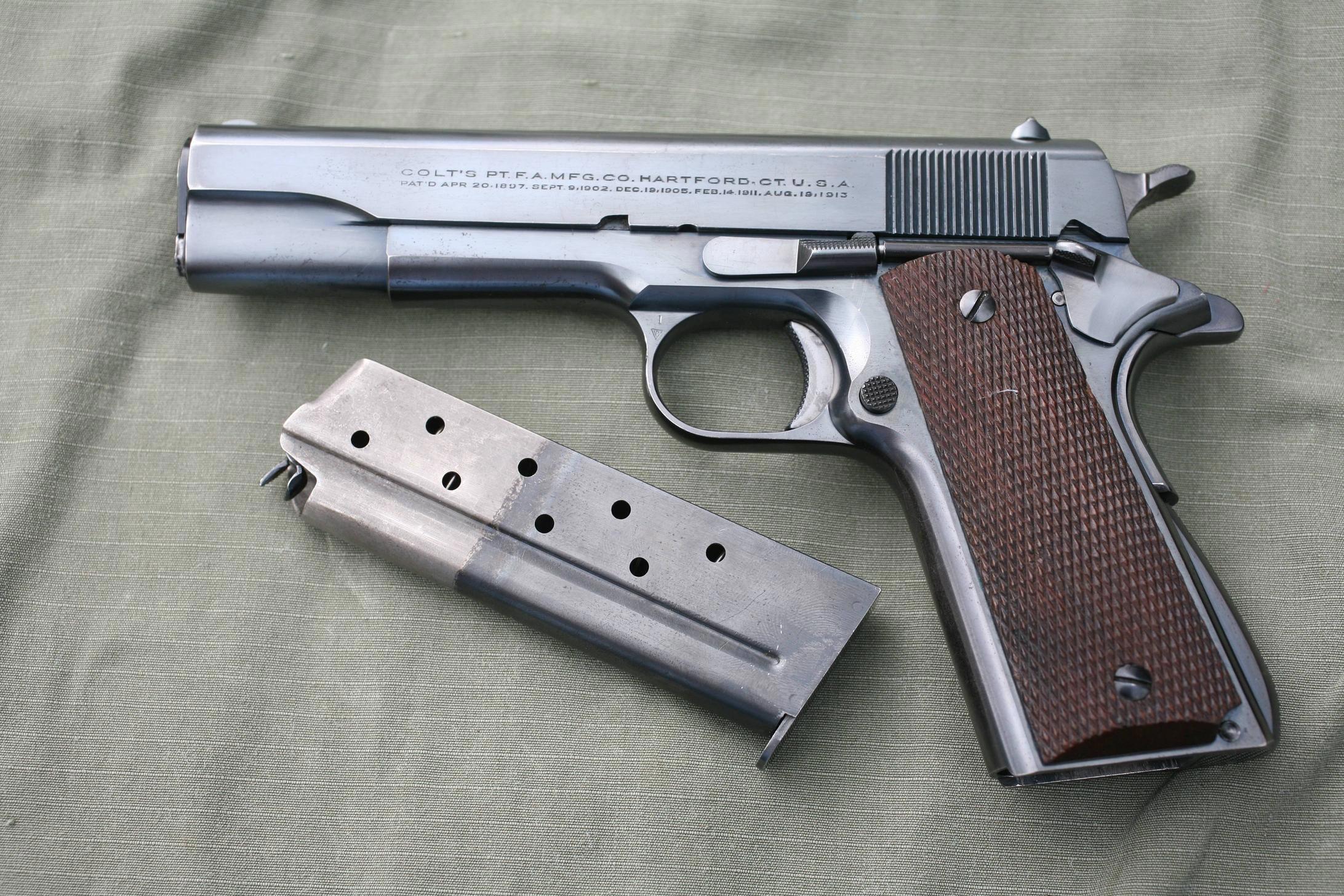 Но и этот угол наклона рукоятки оказался недостаточным и в 1908 году был создан самый легендарный пистолет, который можно смело назвать - "папой всех пистолетов". Речь идёт о модели "Кольт М1911".