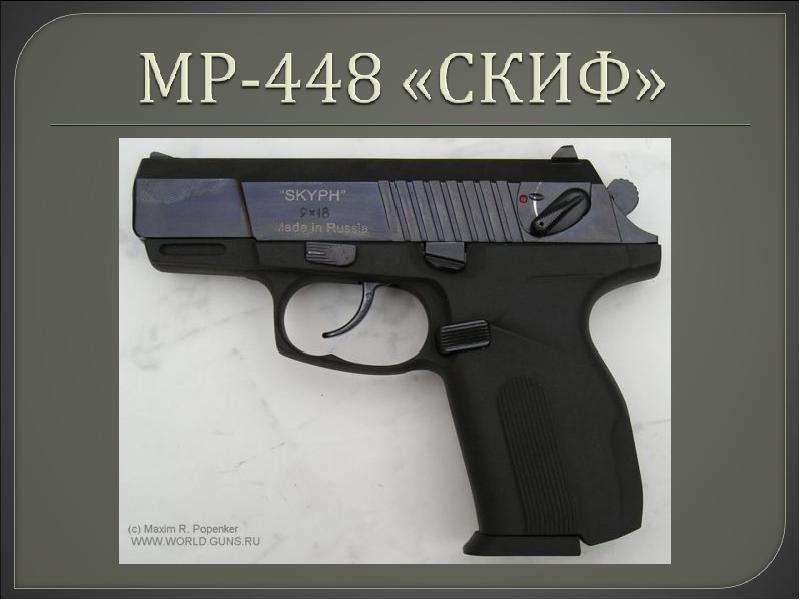 В конце 90-х был создан модернизированный вариант ПМ, под названием МР-448 "Скиф".