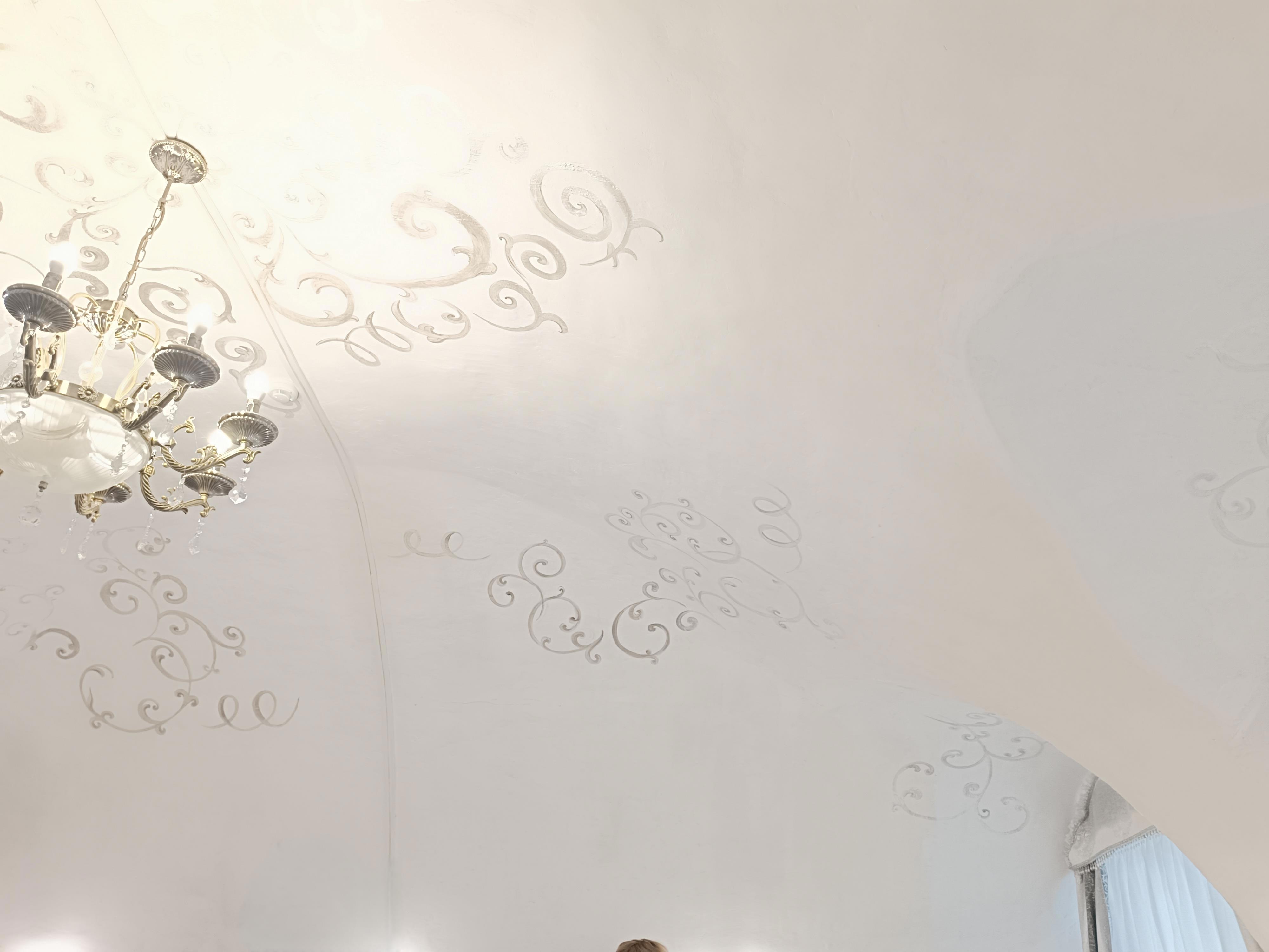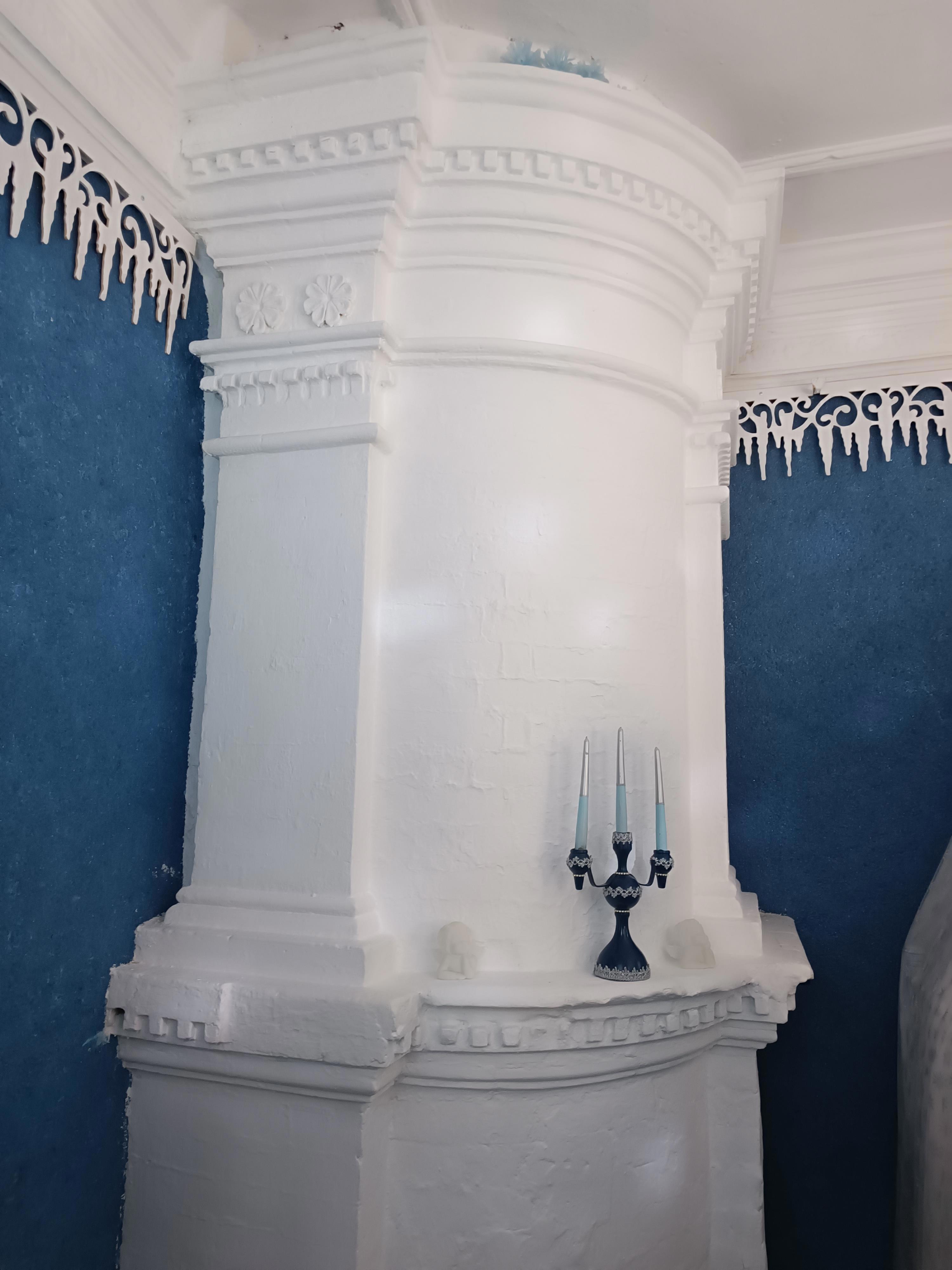 Внутри всё красиво украшено, лепнина на потолках, метровые стены, старинные печи.