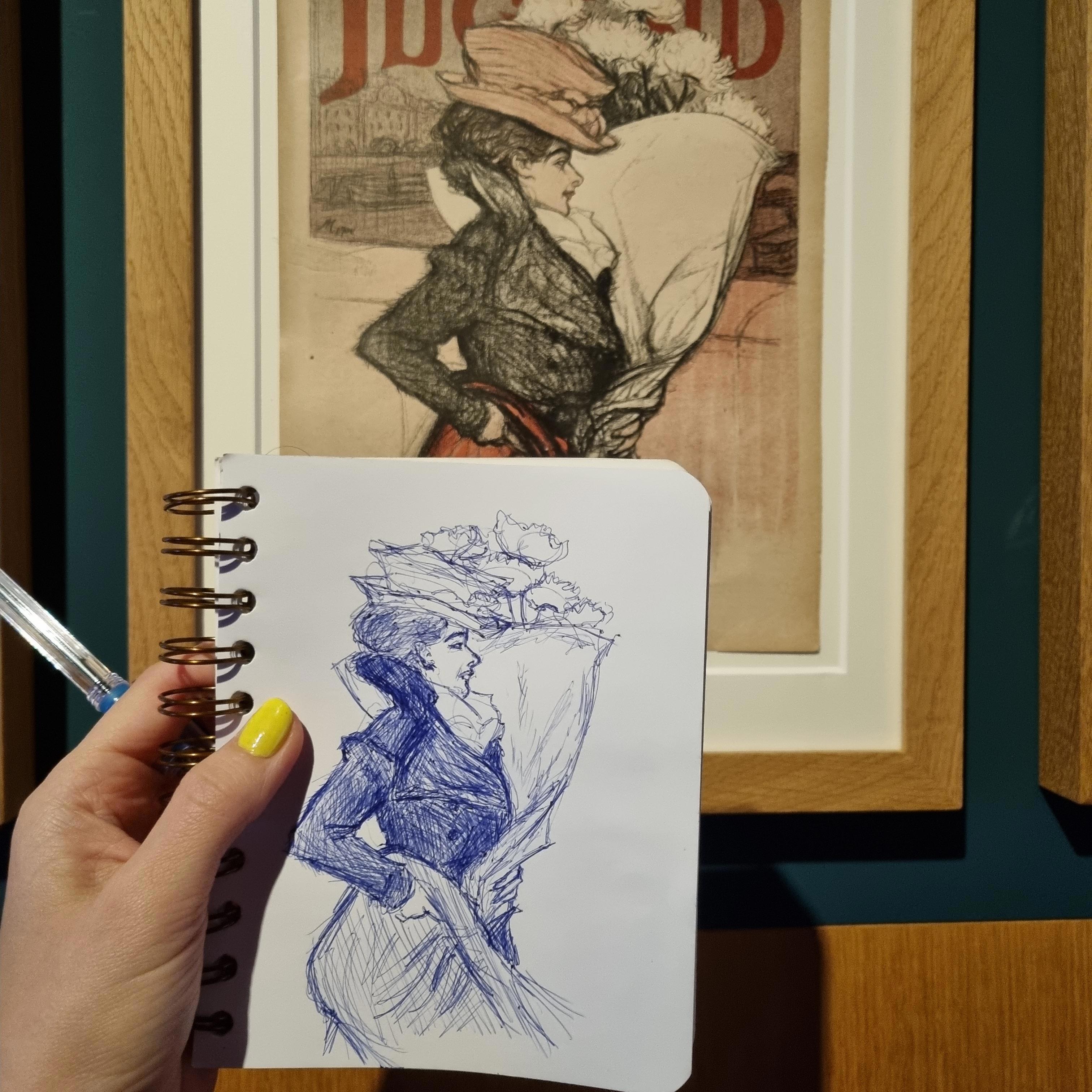 Автор: Яна ВетроваПришла в музей... и так захотелось порисовать! Сама немножко в шоке, потому что это я держала блокнот на весу и рисовала сразу ручкой, без карандашного наброска. И рисую я раз в полгода теперь, эх.