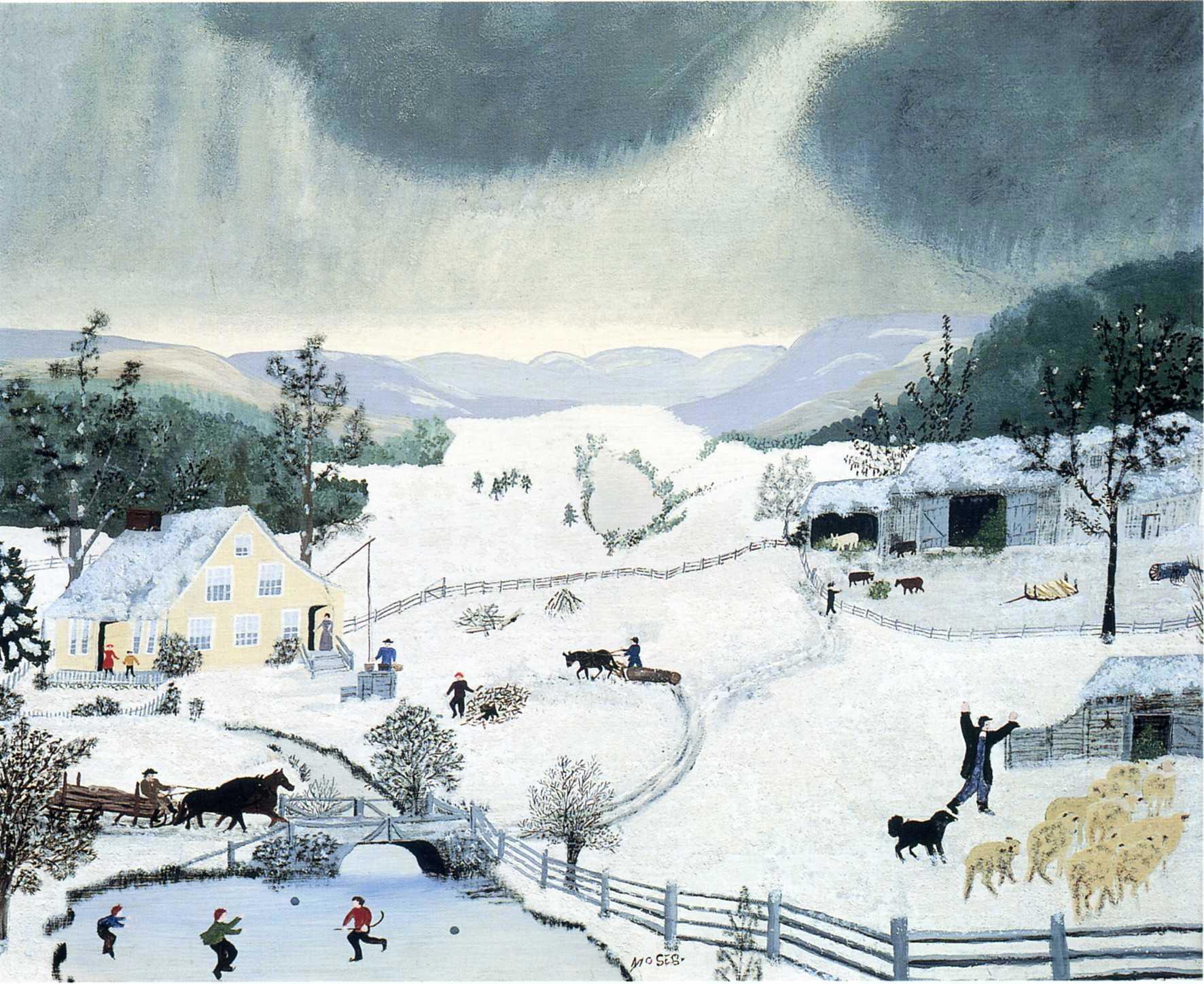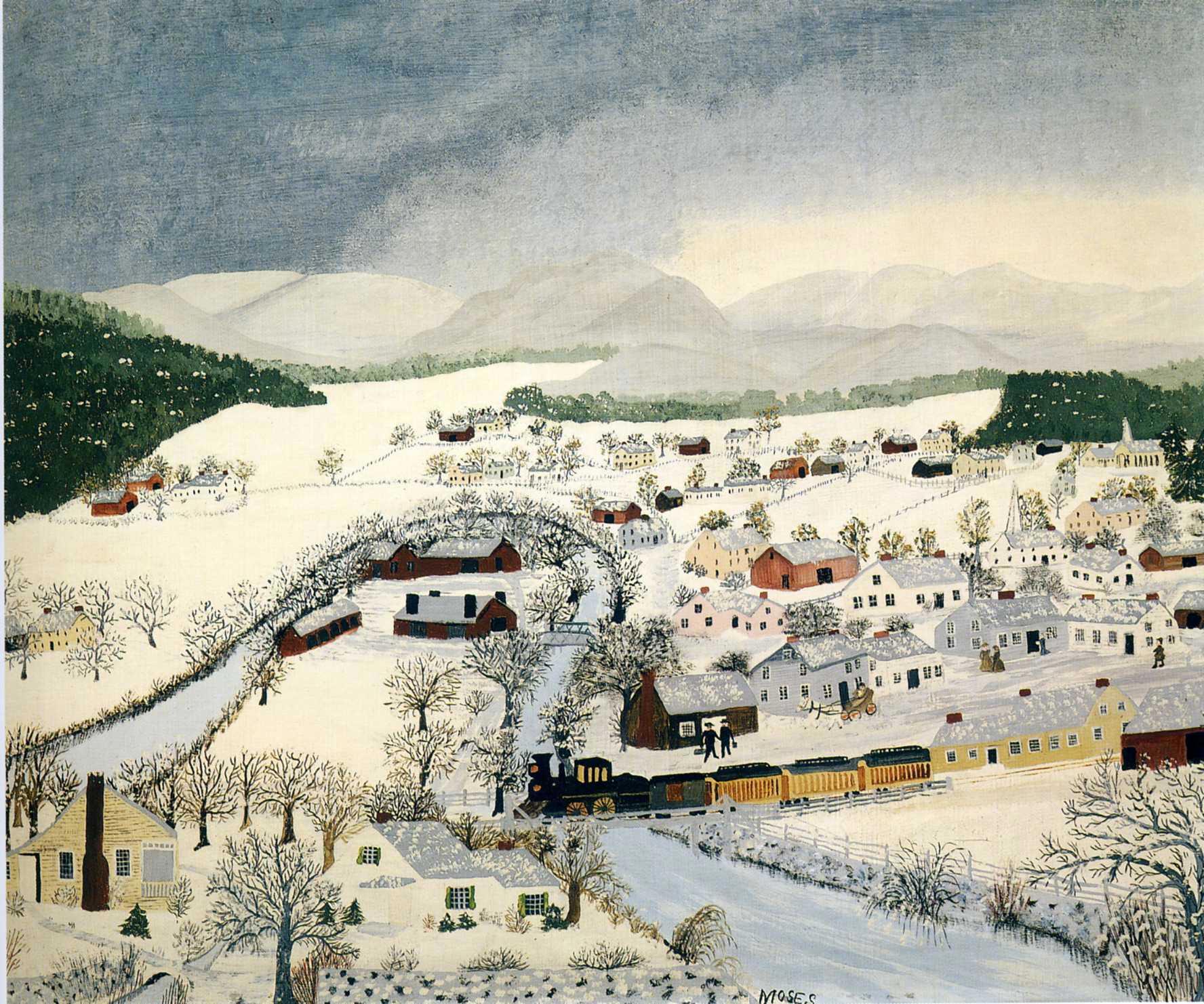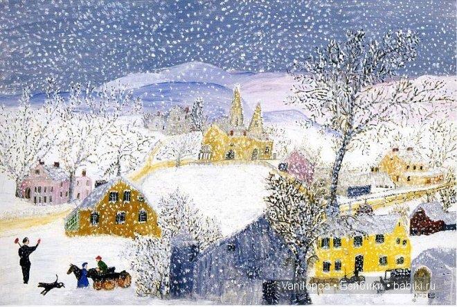 Автор: Марина Эшли Marina EshliЗимние работы примитивистки Анны Мэри Мозес (1860-1961). Художница с интересной творческой судьбой. Рисовать начала в 76 лет. И прославилась. PS Все тот же удививший меня ракурс "с высоты птичьего полета" для художника, который так в реале видеть не мог, чисто воображение.