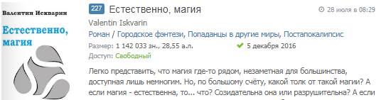 8. Попаданцев обычно обхожу стороной. Плюс — размер, опять 30 алок, да ещё автор пишет, что это только начало, всего 5 частей... Не то чтобы меня пугает многабукав, но если я могу получить 15 катарсисов от 15 романов по 10 алок, зачем мне искать один катарсис от одной истории в 150?