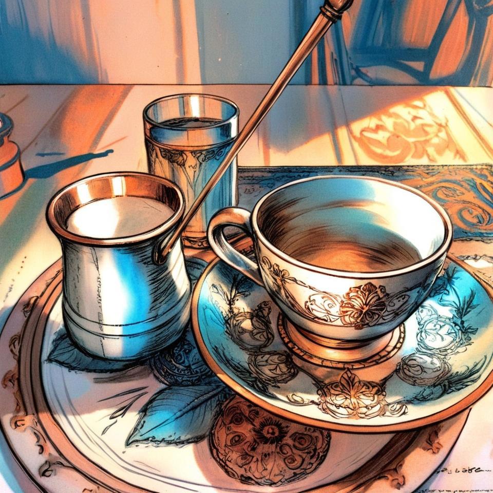 Автор: Валерия ДеминаКофе возник перед ними на медном подносе, благоухая кардамоном тяжело, но умопомрачительно. Мода на горьковатый отвар достигла Итирсиса только в последние годы, и Арис еще негде было с ним знакомиться. В осторожном любопытстве она рассмотрела голубые узорные чашки и маленький кувшин о длинной ручке, представленный ей как «джезва».