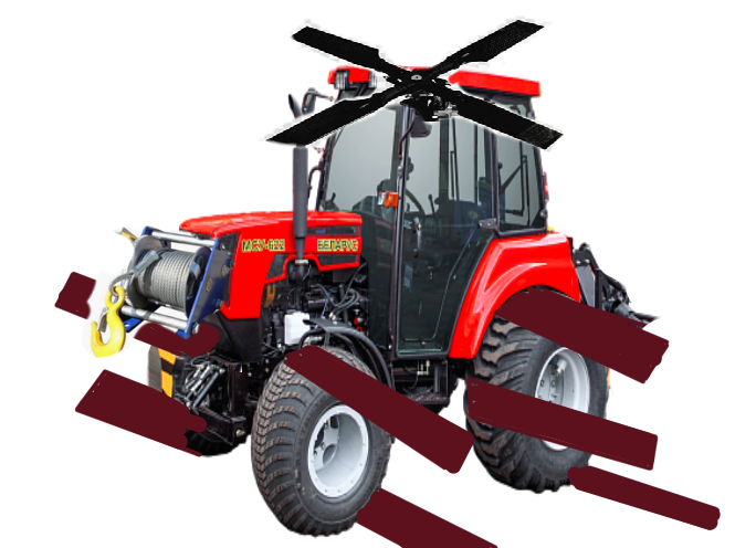 Да, да, все знают, его, как снегоочиститель и большой городской помощник. Итак картина первая - летает. Сверху приспосабливает лопасти, в кабине пилота или где-то сбоку устанавливаем двигатель для них. Полетит! Картина вторая - исследует дно. Герметичная кабина в виде водолазного скафандра. Сзади приспосабливаем якорную лебедку, чтобы сам себя вытащил. Нагружаем снизу тяжелым баллоном, который напрямую соединяем с шаром, в который помещена кабина. При этом, не обязательно, чтобы там присутствовал человек. Зачем кислородный баллон? Для всплытия. Итак, трактор едет по дну океана, неожиданно проваливается во впадину, падая, выстреливает лебедка. Он зависает и она его вытягивает. Удалился слишком глубоко? Включается баллон с кислородом и трактор всплывает вверх. Картина третья - идущий по болотам. Привинчиваются лопасти и пожалуйста, не провалится нигде. Сюда же добавлю, как трактор плавающий. Картина четвертая - лазающий по горам. Ну здесь вообще все просто - впереди и сзади лебедка. Сам себя вытянет.